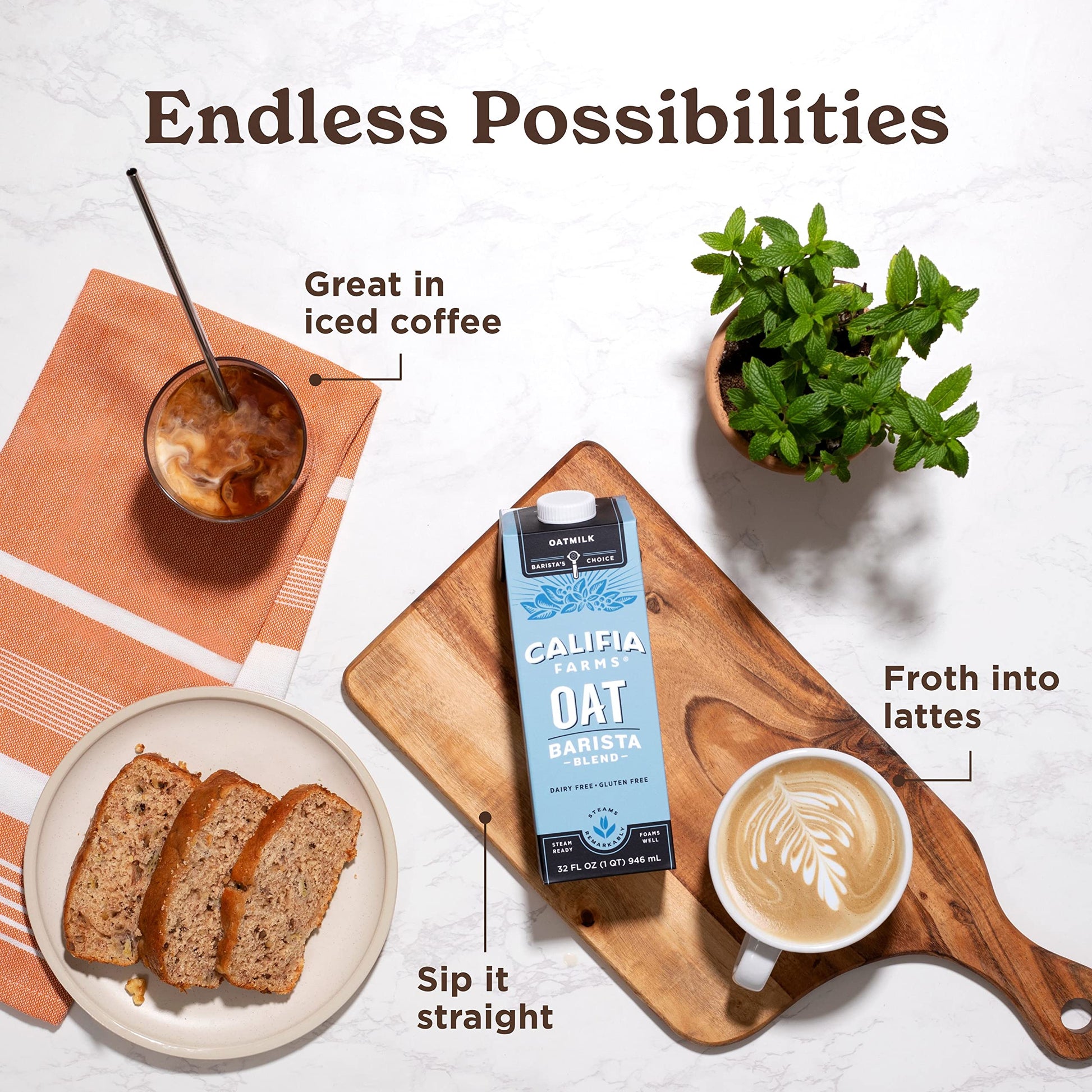 Califia Farms - Oat Barista Blend Oat Milk, 32 Oz (Pack of 6), Shelf Stable, Dairy Free, Plant Based, Vegan, Gluten Free, Non GMO, High Calcium, Milk Frother, Creamer, Oatmilk