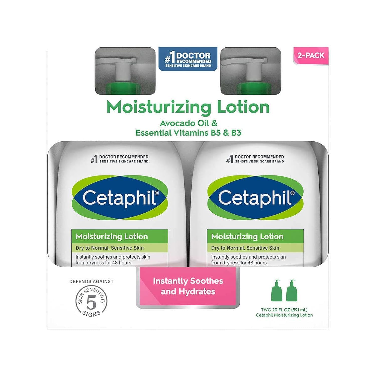 Cetaphil Moisturing Lotion, Dry to Normal Sensitive Skin, with Avocado Oil and Essential vitamins B5 & B3-20 fl oz, 2 Count