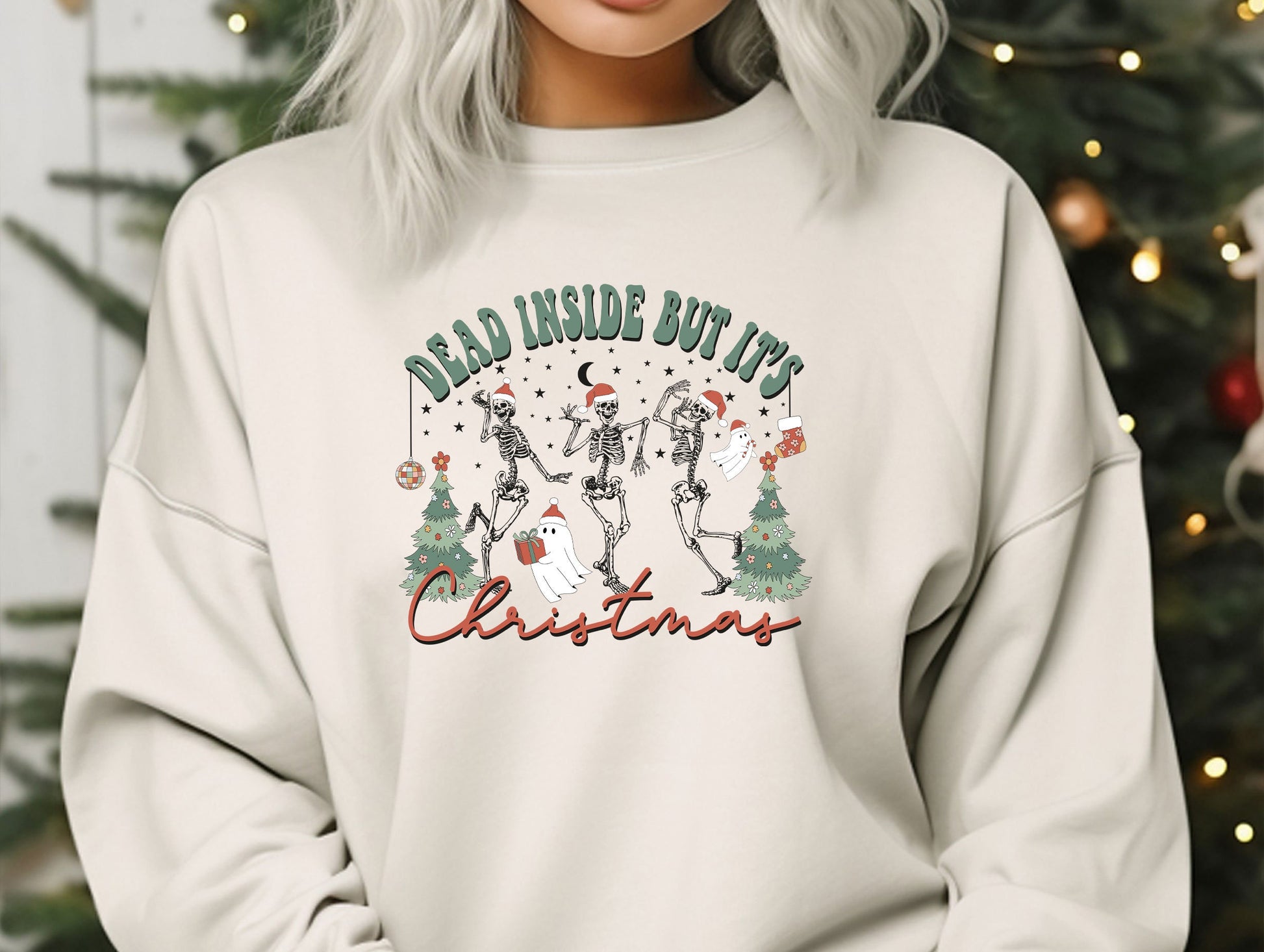 Dead Inside But It's Christmas Sweatshirt, Funny Skeleton Hoodie, Skeleton Christmas Hoodie, Oversized Christmas crewneck unique gift her