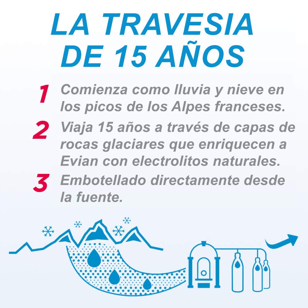 - CRAFTED BY NATURE: evian natural spring water begins as snowflakes and mountain rain, naturally filtered through glacial rocks for over 15 years, giving evian its purity, mineral content and neutrally balanced 7.2 pH for delicious natural spring water.