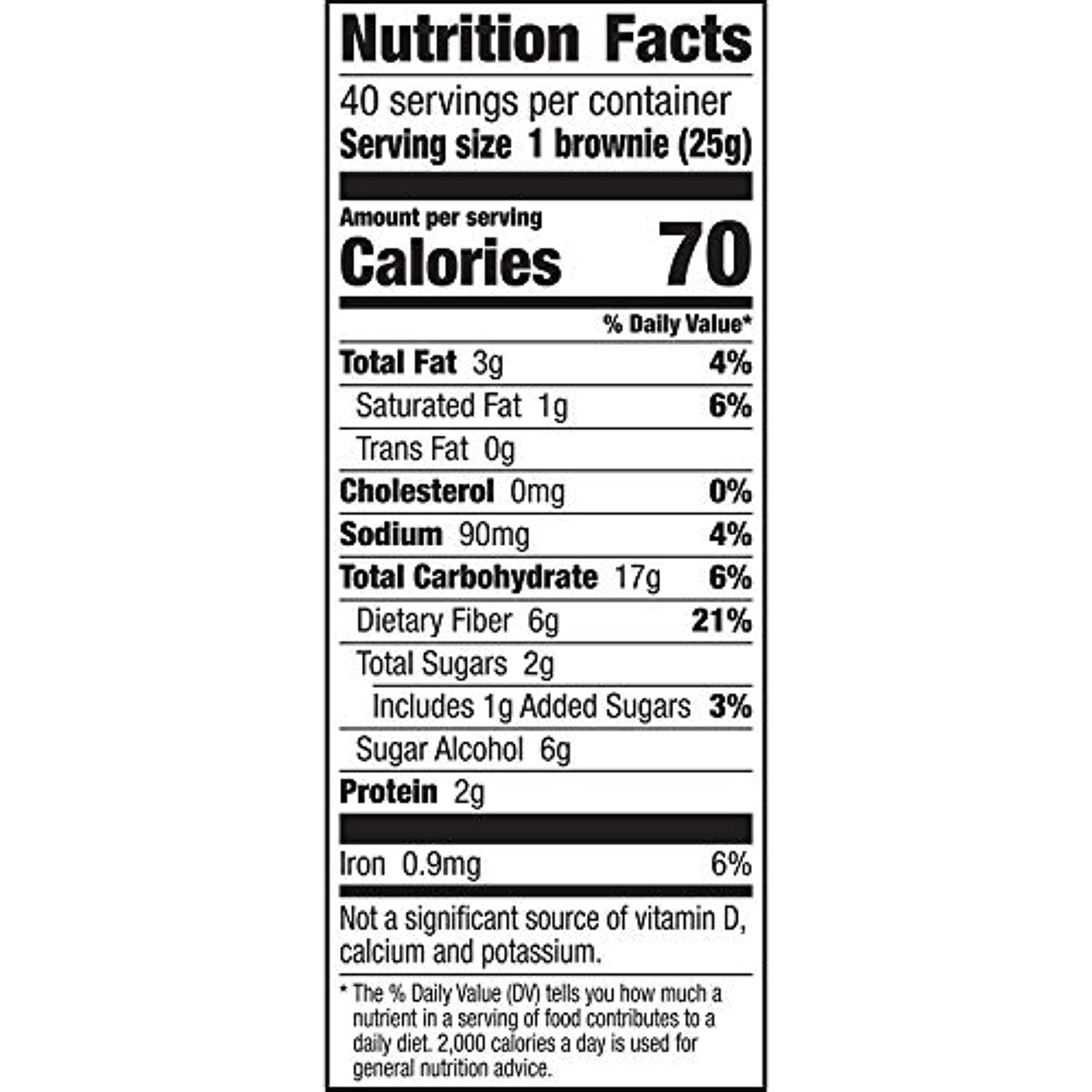 These delicious Fiber One Brownies Chocolate Fudge will satisfy your sweet chocolate cravings. These fiber brownies are flavored naturally and contain 20% of your recommended daily fiber intake. Each chocolate brownie is only 70 calories and contains three grams of fat so you can indulge on this delicious snack guilt free. Help friends and family members feel great about snacking on these.