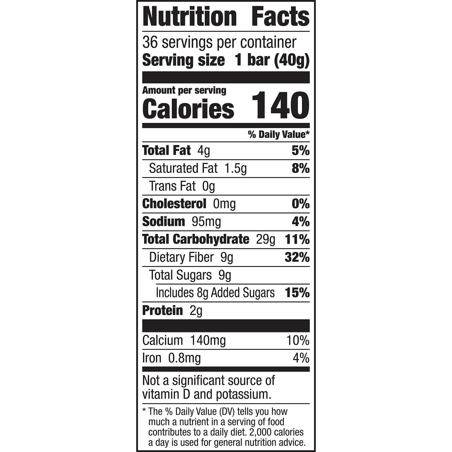 Fiber One Oats and Chocolate Chewy Bars (1.4 oz., 36 ct.) make a great naturally flavored snack for children and adults alike. The convenient package contains 36 individually-wrapped bars with 20 percent more chocolate chips and 9 grams of fiber per bar; that is 35 percent of the daily fiber recommendation.