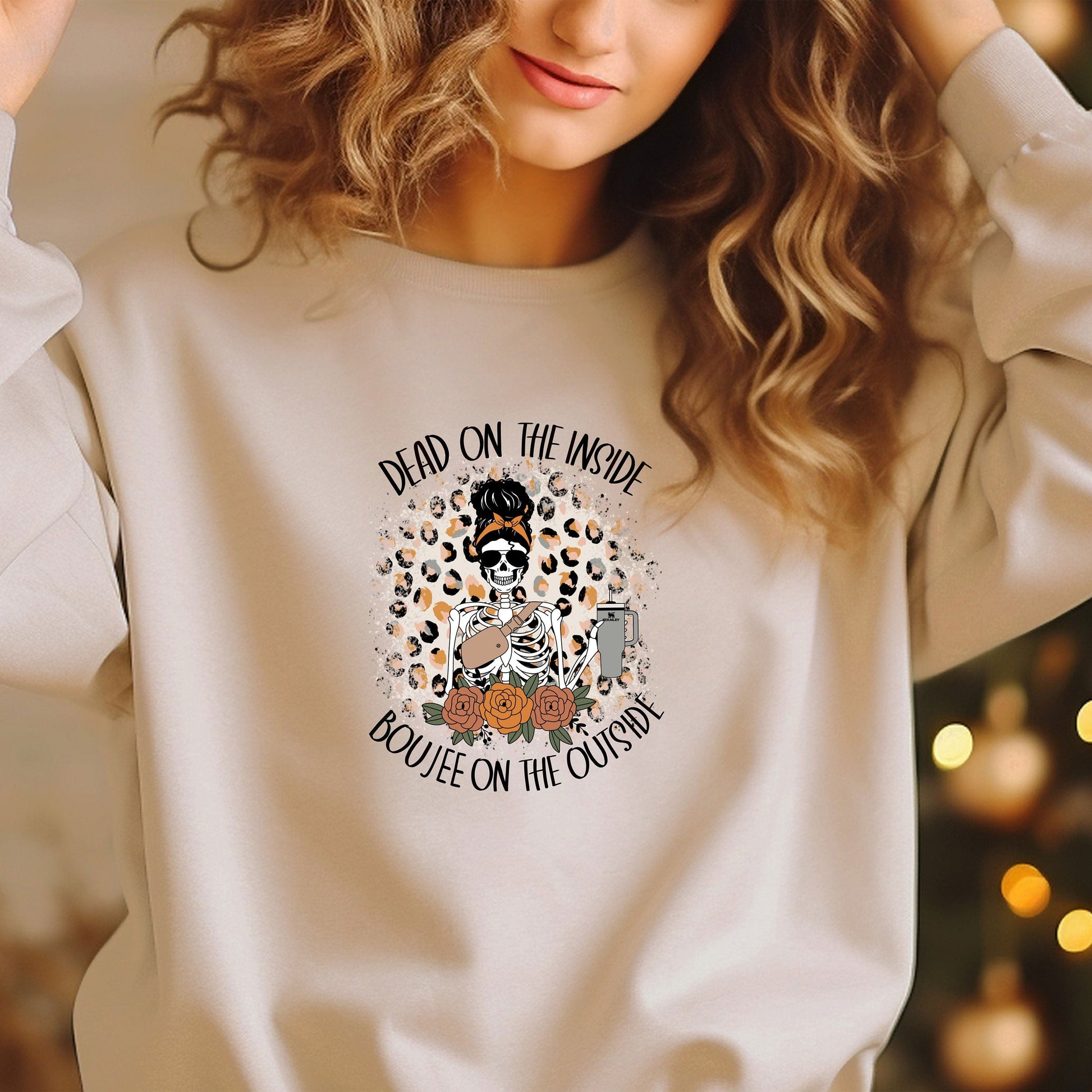 Funny Halloween Sweatshirt, Dead On The Inside Boujee On The Outside Shirt, Skeleton Shirt, Skeleton Sweatshirt, Halloween Sweatshirt,