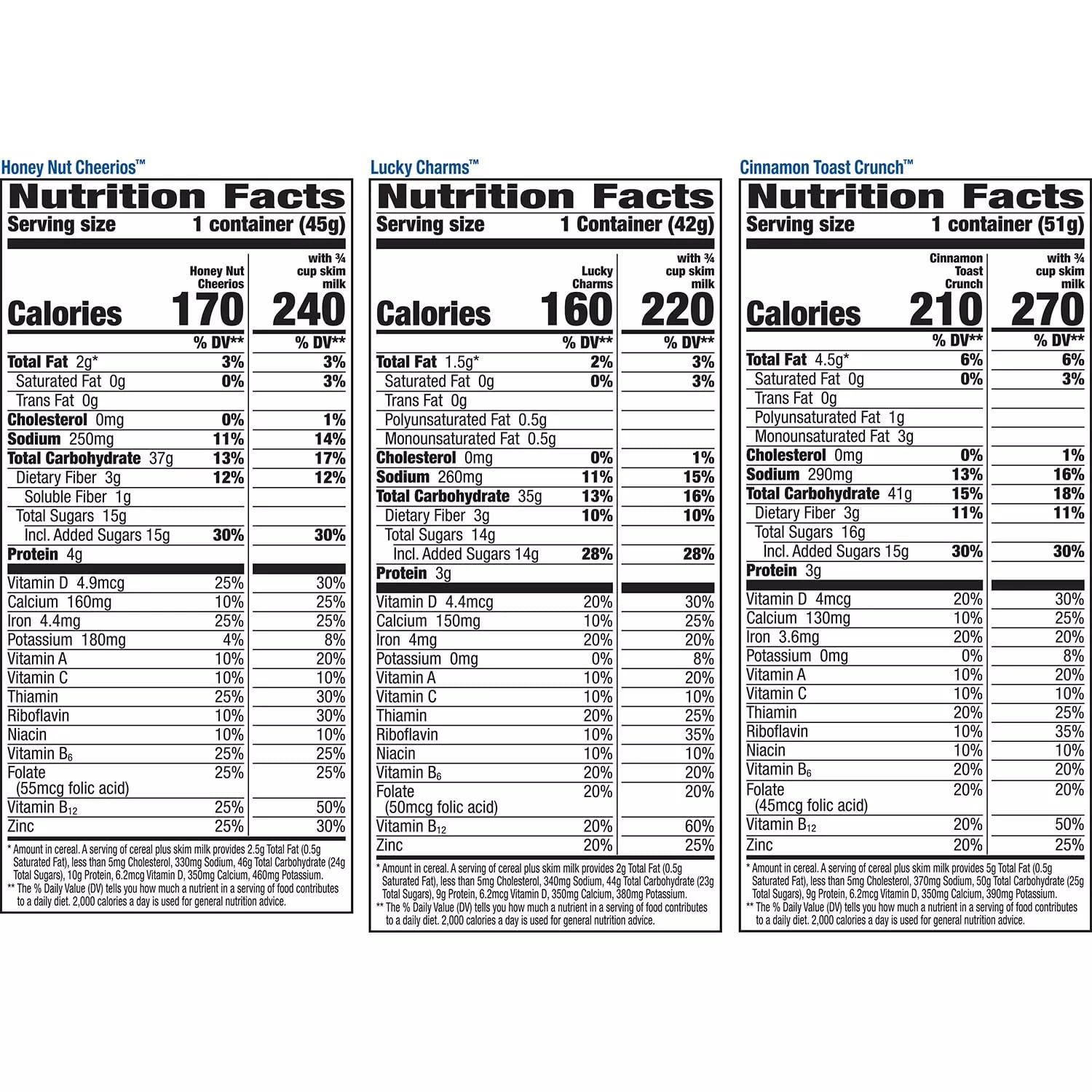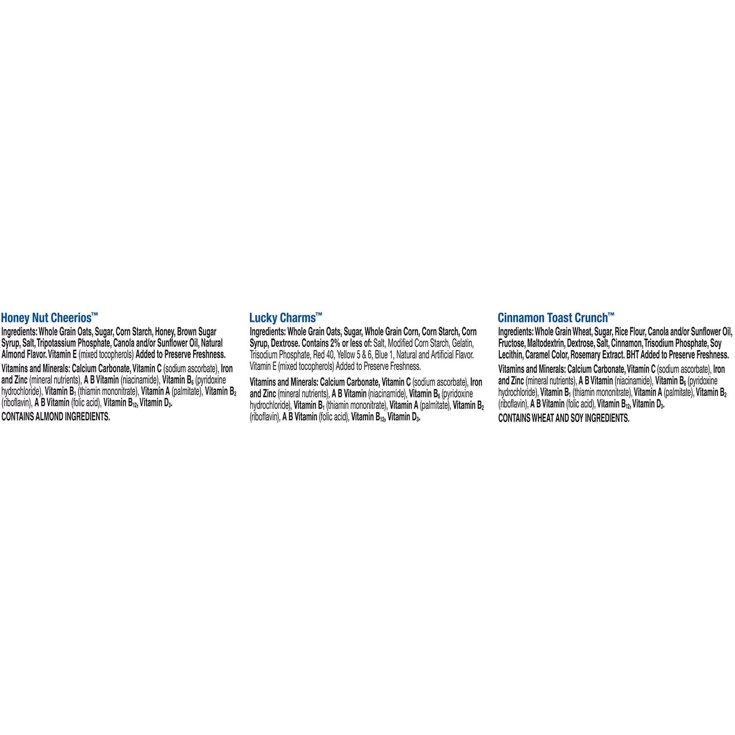 Take along the magically delicious taste of General Mills Lucky Charms Gluten Free Cereal with Marshmallows, the taste of toasted oats and real honey in Honey Nut Cheerios, and the iconic cinnamon-sugar combination in Cinnamon Toast Crunch on-the-go! his offer allows you to enjoy your favorite General Mills Breakfast Cereals! For Lucky Charms, each individual cup brings a smile to breakfast time with a single serving of oat cereal and Luckys magical marshmallows. Share the magic with a cup for everyone in your family. For Honey Nut Cheerios, each individual cup is full of the toasted honey Os that make breakfast time that much sweeter. Whole grain oats are the first ingredient, and the drizzle of real honey and natural almond flavor creates un-bee-lievably delicious taste. Cinnamon Toast Crunch - a crunchy and delicious breakfast cereal is perfect for mealtime, snack time or whenever! It has quickly become a favorite cereal, featuring those crazy squares blasted with the epic cinnamon and sugar combination we call Cinnadust.