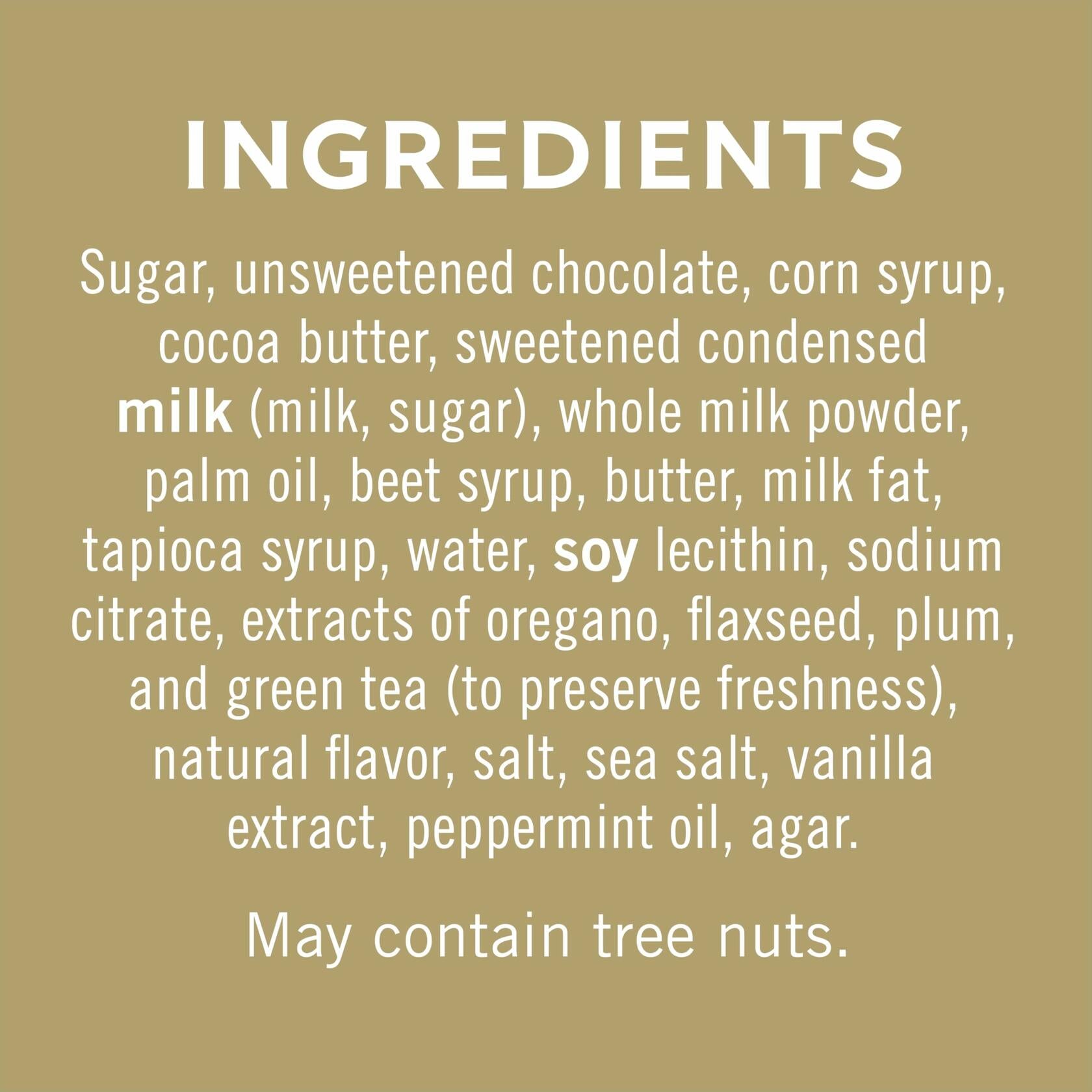 - Includes Milk Chocolate, Milk Chocolate Caramel, Dark Chocolate Mint, and Dark Chocolate Sea Salt Caramel