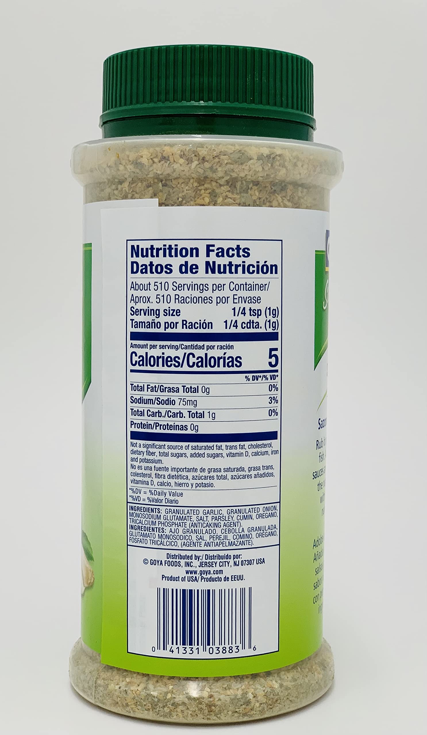 Goya Sazonador Total "the Perfect Seasoning" 18 oz, rub it on meats, poultry and fish. Add to salads, soups, sauces and vegetables. Enhances the natural flavors of food with the perfect mix of natural ingredients.