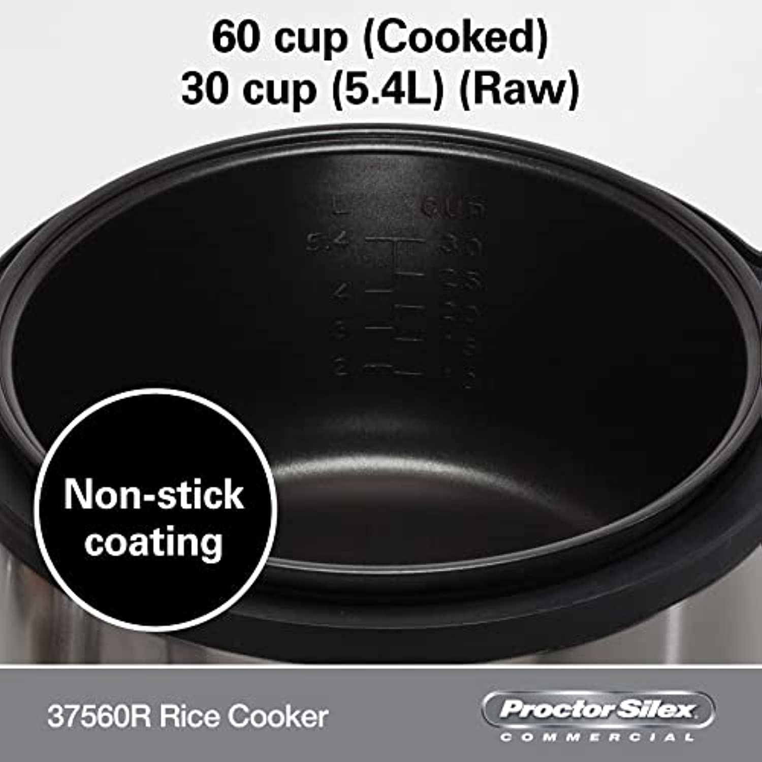 Hamilton Beach Proctor Silex Commercial 37560R Rice Cooker/Warmer, 60 Cups Cooked Rice, Non-Stick Pot, Hinged Lid, Stainless Steel Housing, 1 Year Warranty