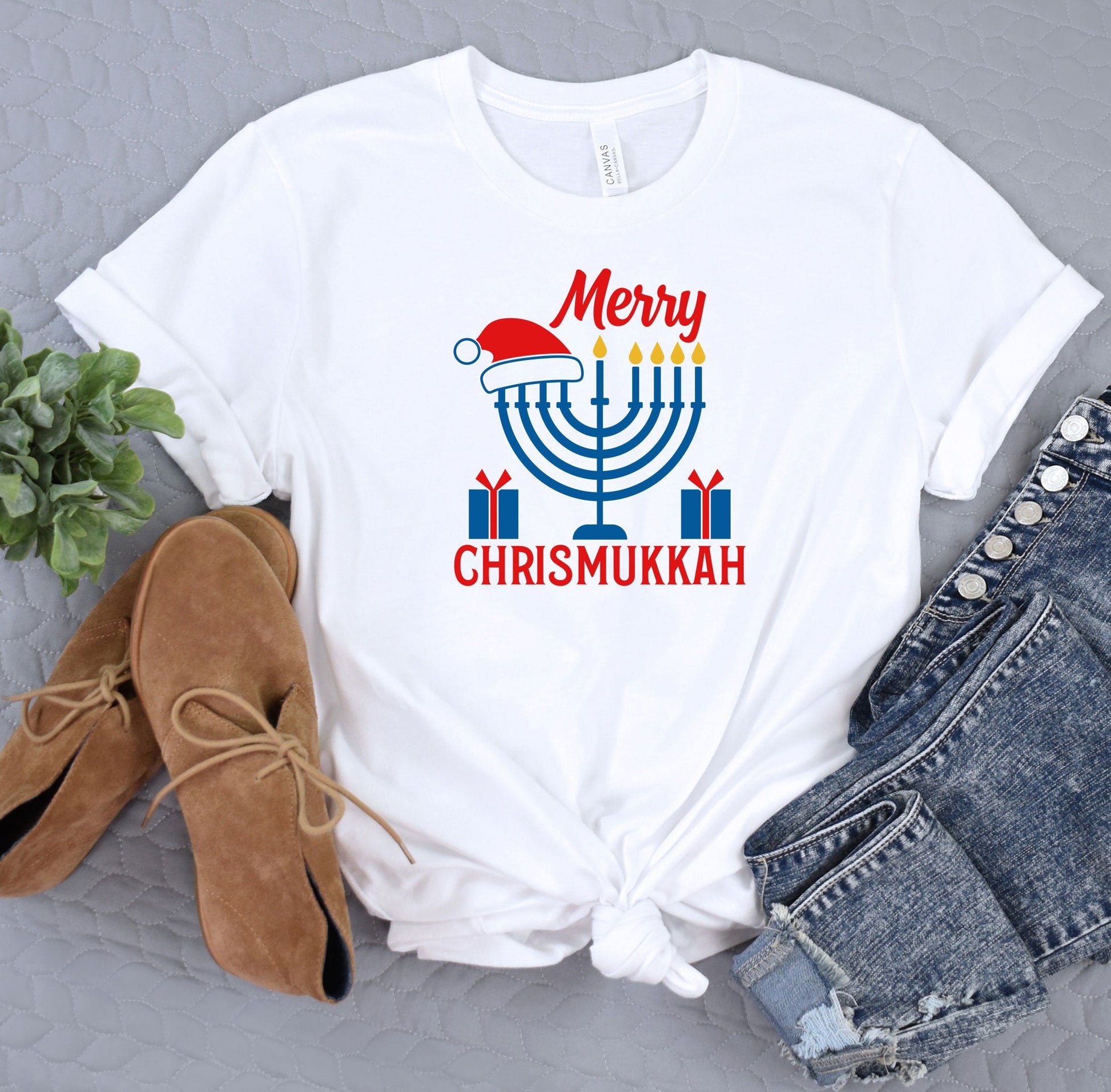 Happy Chrismukkah Shirt, Funny Hannukkah Shirts, Christmas Ugly Sweater Shirt, Hanukkah Menorah Shirt, Chanukah Jewish Holiday Celebration
