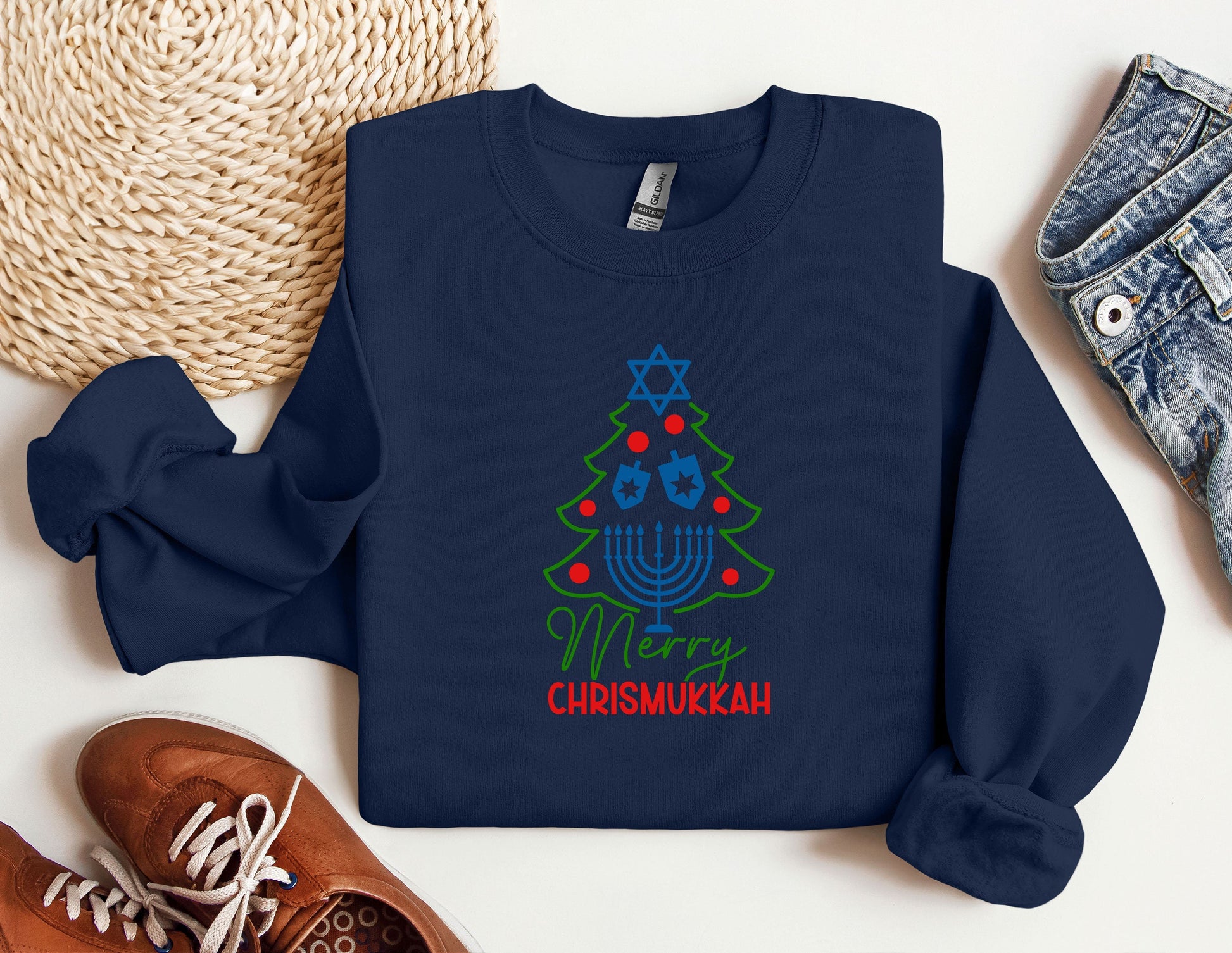 Happy Chrismukkah Sweatshirt, Funny Hannukkah Sweatshirts, Christas Ugly Hoodie, Hanukkah Menorah Sweatshirt, Chanukah Jewish Holiday Sweat