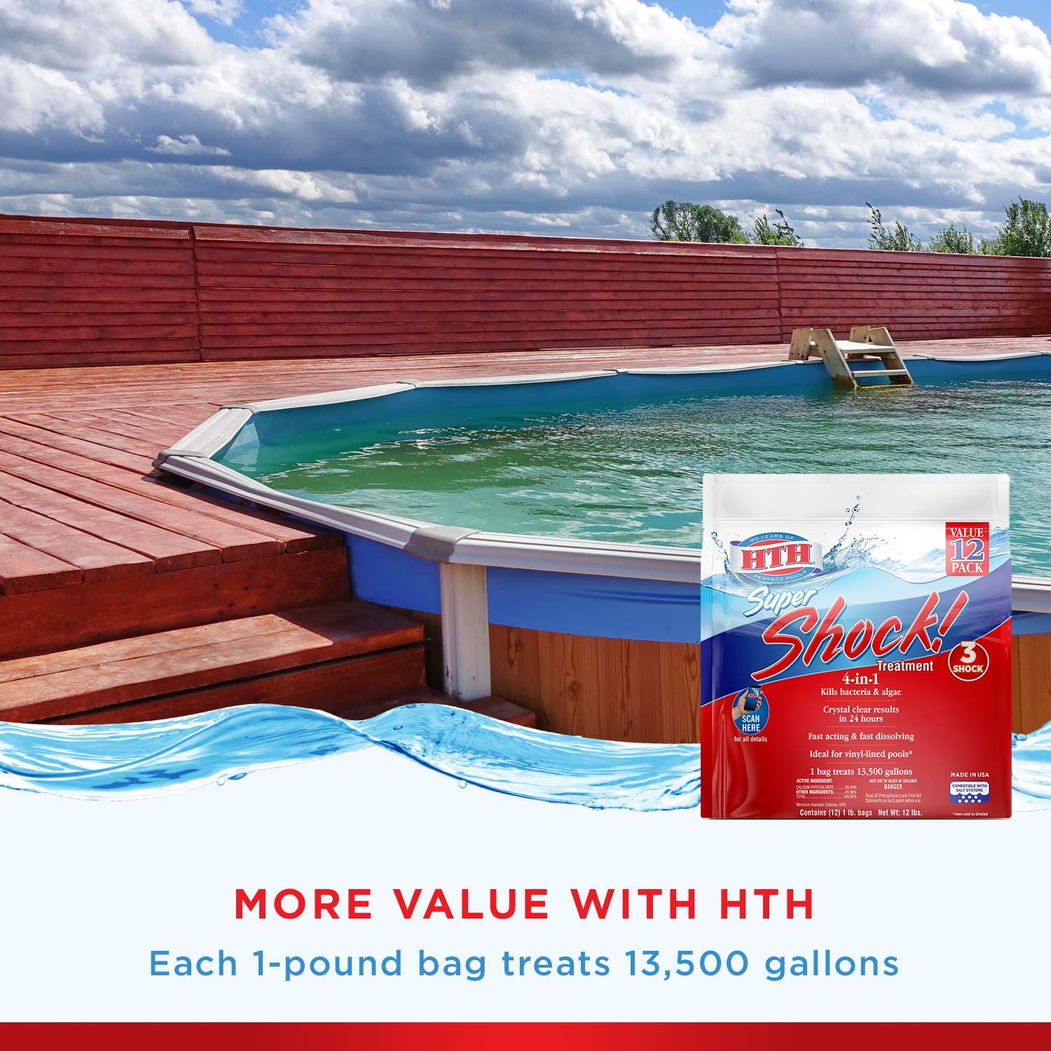 HTH 52026 Super Shock Treatment Swimming Pool Chlorine Cleaner, 1 lb (Pack of 12)