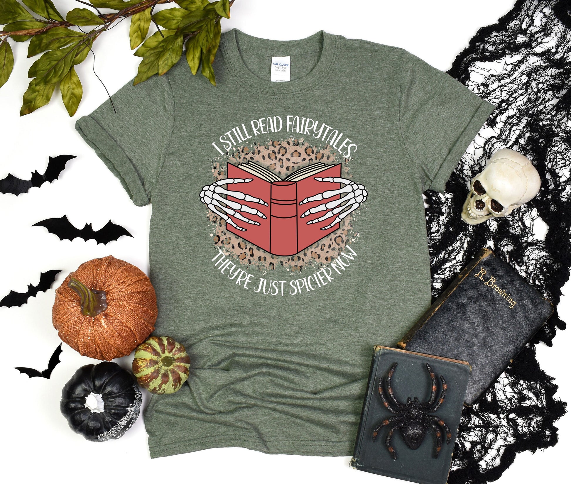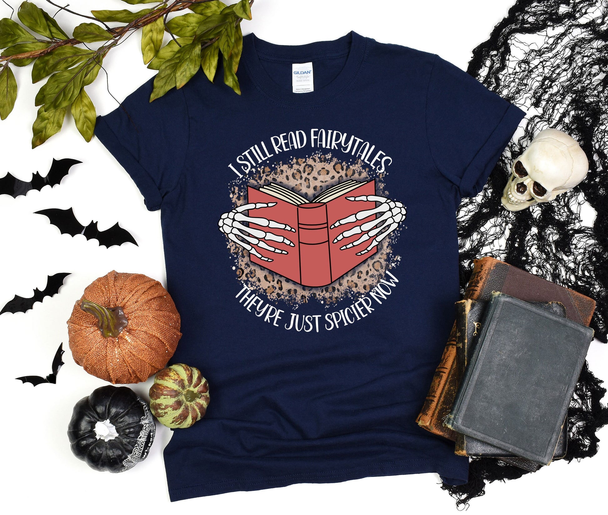 I still read Fairytales they're just spicier now Halloween T-Shirt, Comfort Halloween Tee, Skeleton Book Shirt, Retro Halloween Gift