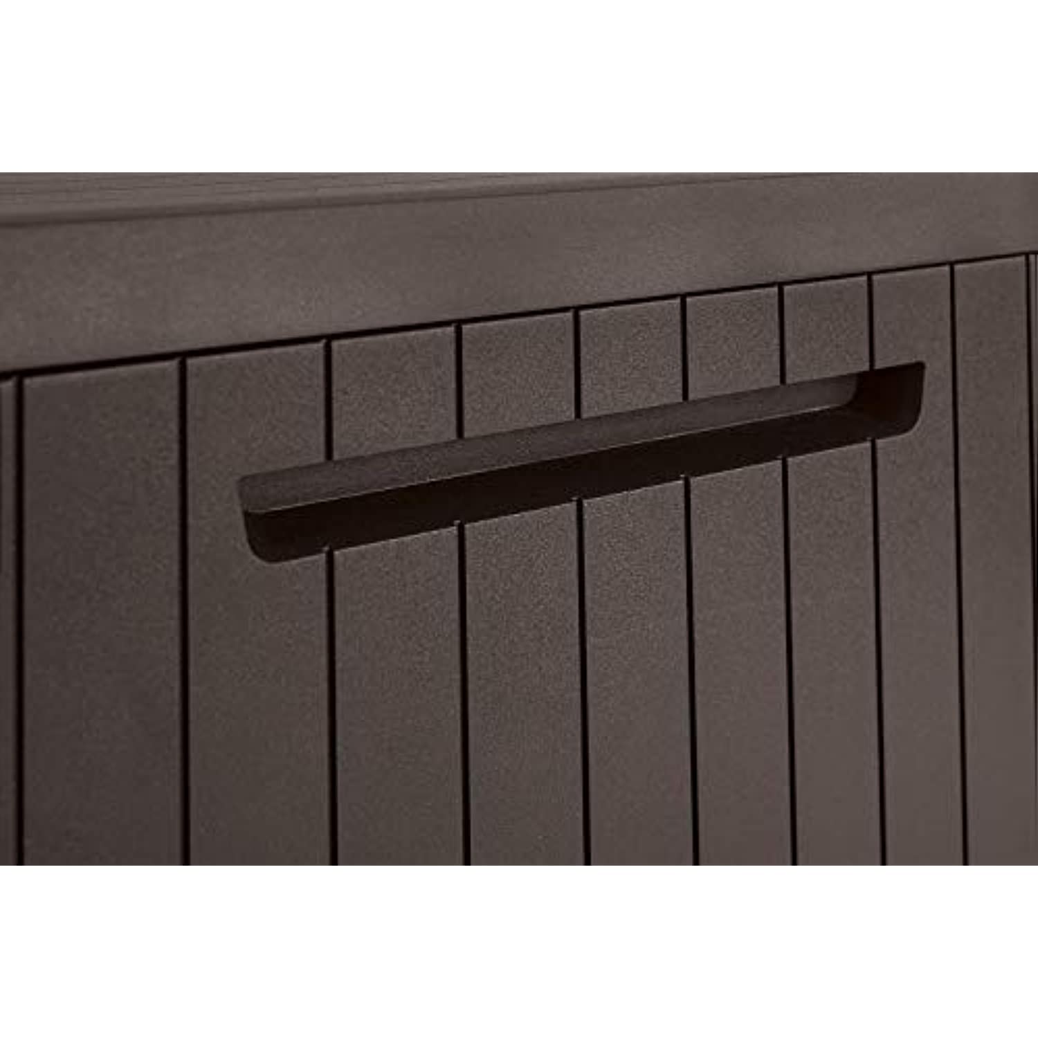 Keter City 30 Gallon Resin Deck Box for Patio Furniture, Pool Accessories, and Storage for Outdoor Toys, Brown