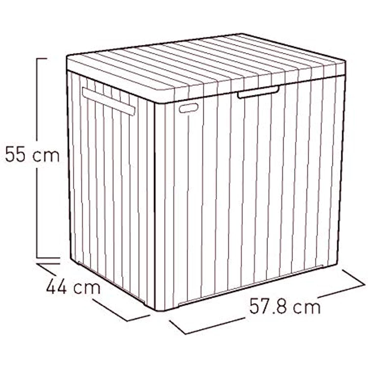 Does it seem like there's never enough space no matter how much you declutter? With the City Box, you get extra storage space to keep things organized outside your home. Whether it's poolside or on your balcony, this resin box provides adequate space for pool supplies, cushions and more. It can even double as extra seating for enjoying a good book outdoors. Features: • Exterior dimensions: 22.75 in. L x 17.3 in. W x 21.7 in. H • Interior: 22.71 in. L x 16.3 in. W x 20.3 in. H • Storage capacity: 30 gallons • Weight capacity: 220 lbs • Doubles as a comfortable patio bench seat for one adult • Elegant natural wood design and finish to fit any outdoor decor • May be used as an attractive side table or patio table • Easy to assemble and easy to maintain • Durable deck box construction will not warp, dent, rust or peel • UV-protected resin never needs painting • Rugged all-weather outdoor furniture resin construction • Ventilated interior keeps contents safe and dry