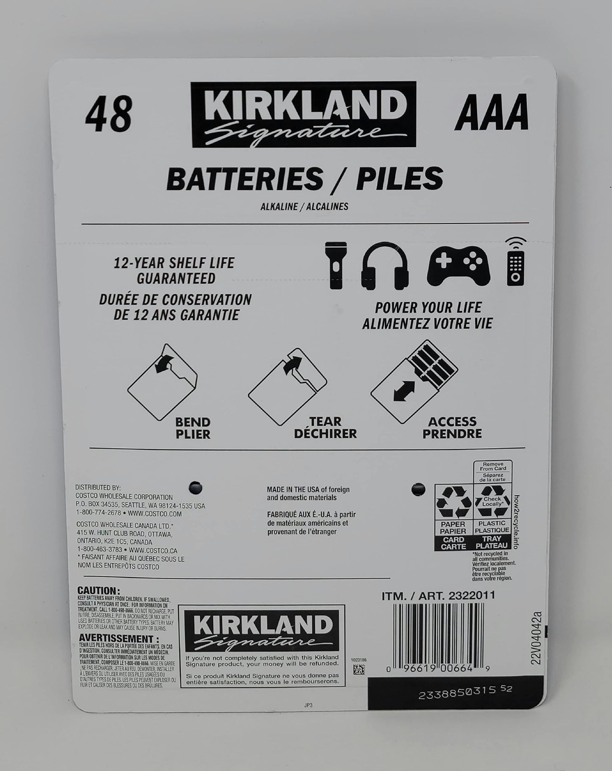 Kirkland Signature Alkaline AAA Plus Batteries, 48 Count