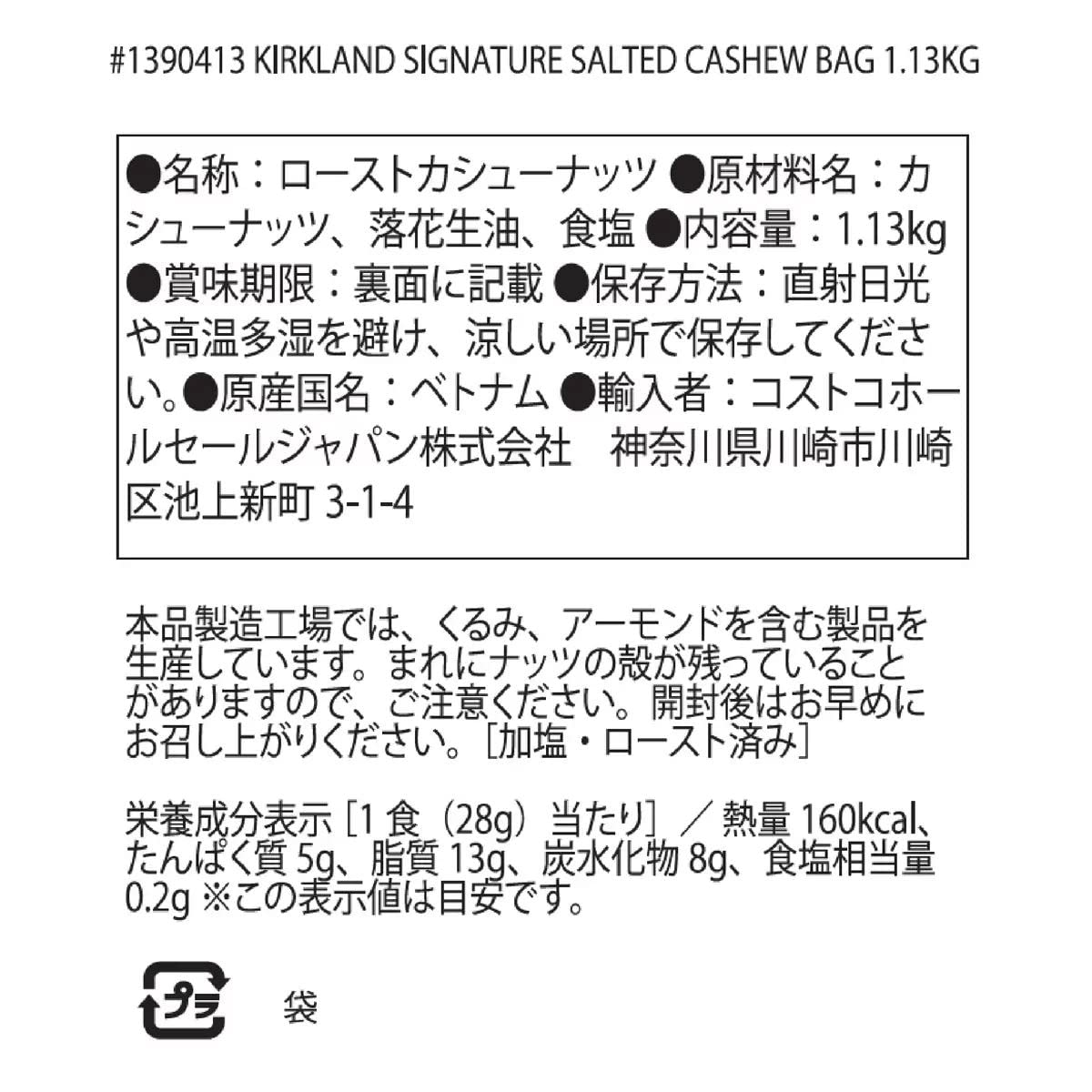 KIRKLAND SIGNATURE ORGANIC CASHEWS 1.13KG