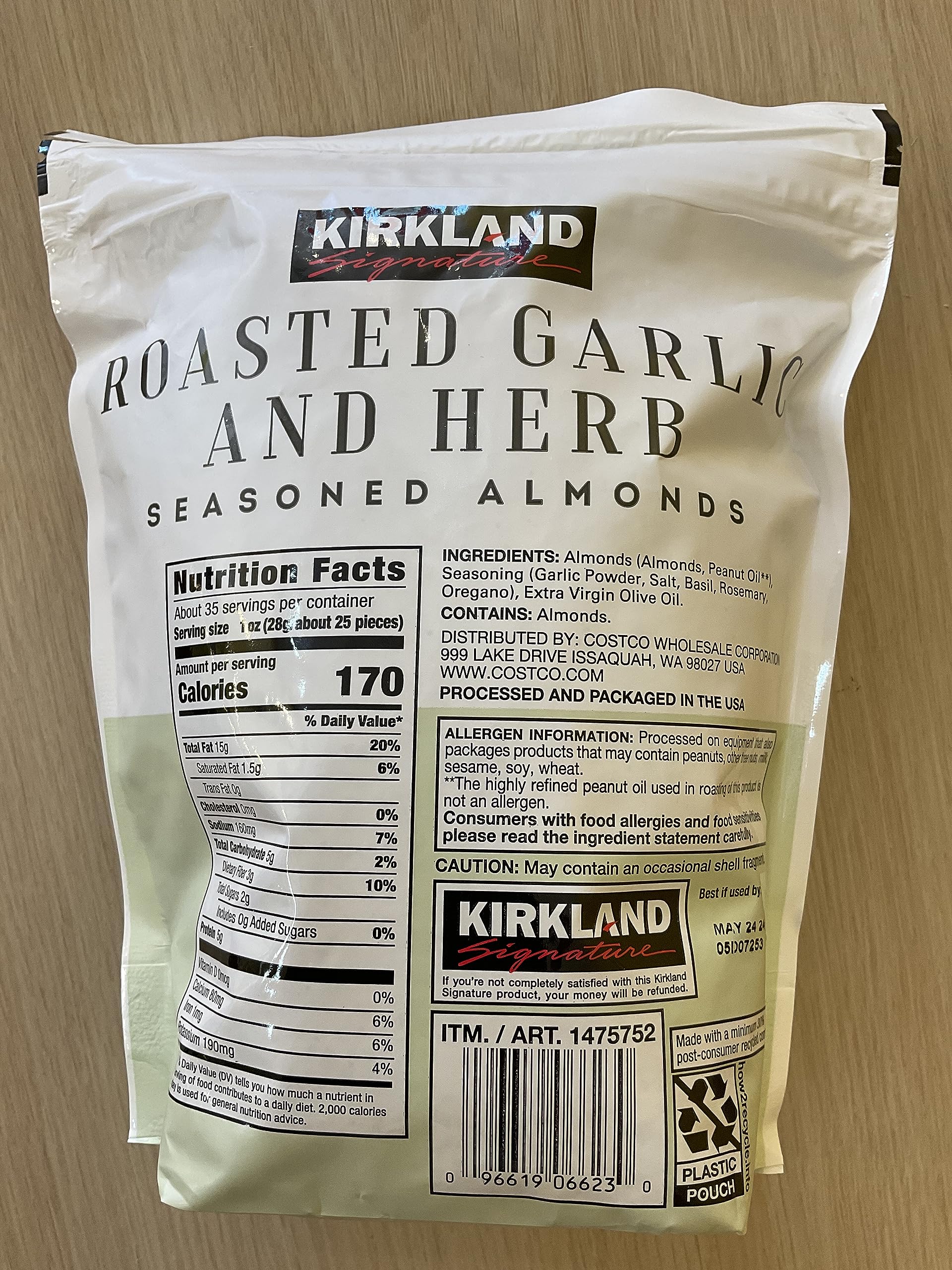 Kirkland Signature Roasted Garlic & Herb Almond 1bag 2.2LB