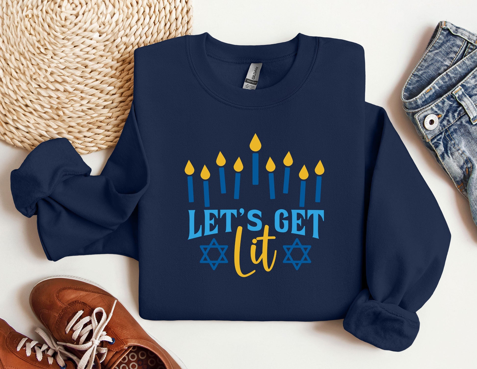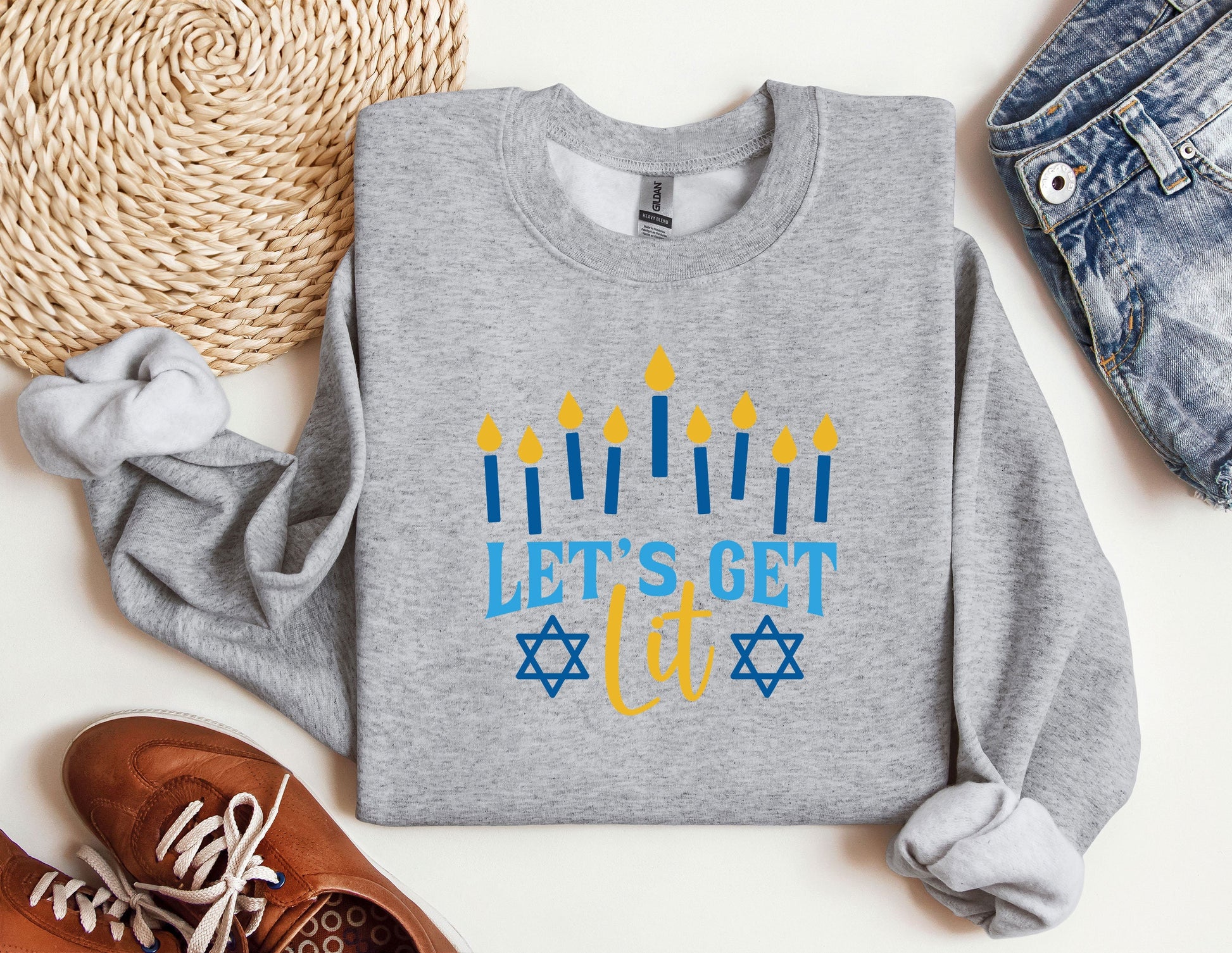 Let's Get Lit Hanukkah Sweatshirt, Hanukkah Sweaters, Funny Hanukkah Hoodies, menorah Jewish Hoodies