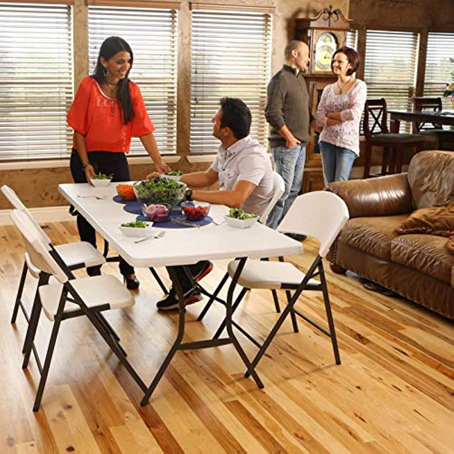 Nothing is worse than gathering the family together only to realize, Uncle Joe doesn't have a place to sit. Save the night with one of Lifetime's Lightweight Plastic Folding Chairs. Arriving in sets of 4, these chairs are made from heavy-duty polyethylene, making them easy to clean and stain resistant. No worries if the chairs end up at the kids' table, they'll manage. With UV-protection and an all-weather resistant steel frame, take them outdoors and have a seat on the patio, by the pool, or in the garden. So the next time there's a family BBQ, and Uncle Joe says he says he doesn't mind standing, but we all know he does, hand him one of these durable folding chairs from Lifetime. Let's make the holidays a little less awkward this year.