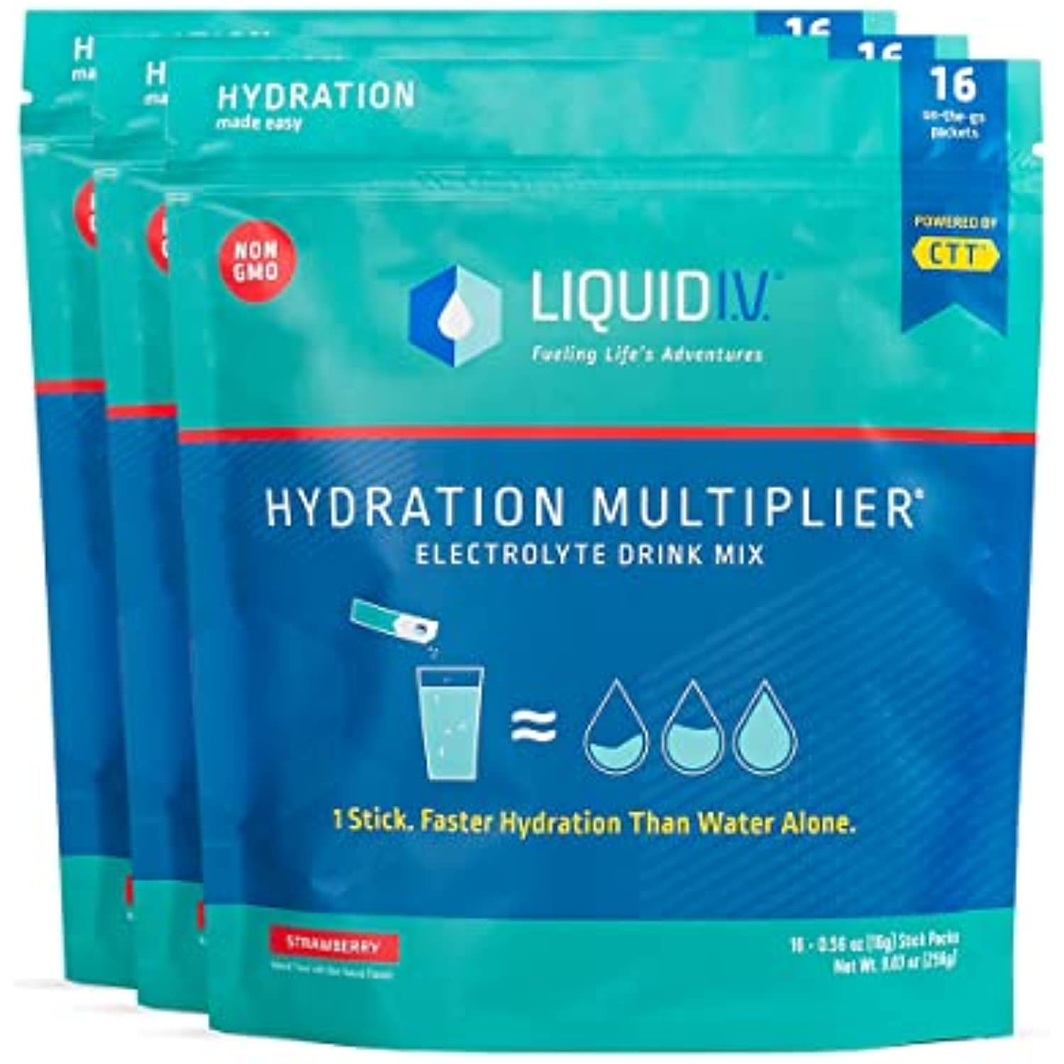 Liquid I.V. Hydration Multiplier - Strawberry - Hydration Powder Packets | Electrolyte Drink Mix | Easy Open Single-Serving Stick | Non-GMO | 48 Sticks