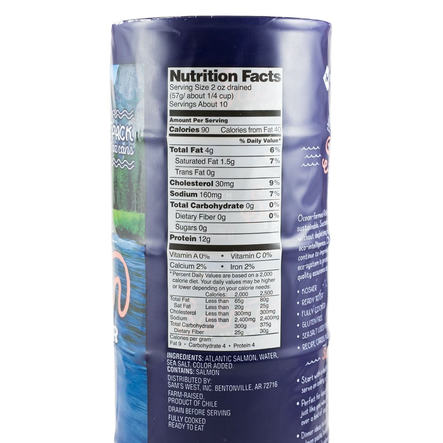 Member's Mark Canned Atlantic Salmon is a versatile solution to everyones salmon cravings. Eating salmon can sometimes be a chore. Finding it, cooking it, deboning it, and all the other steps make it a less than ideal solution. However, with Member's Mark Canned Atlantic Salmon these problems are all alleviated. The fresh, tasty salmon has no bones, so its easy to eat straight out of the can. It has the convenience of tuna with that unmistakably great salmon flavor. In addition, it is skinless as well. Theres no need to worry about rubbery skin as you chew your way through this healthy snack. It is delicious without all of the hassles.