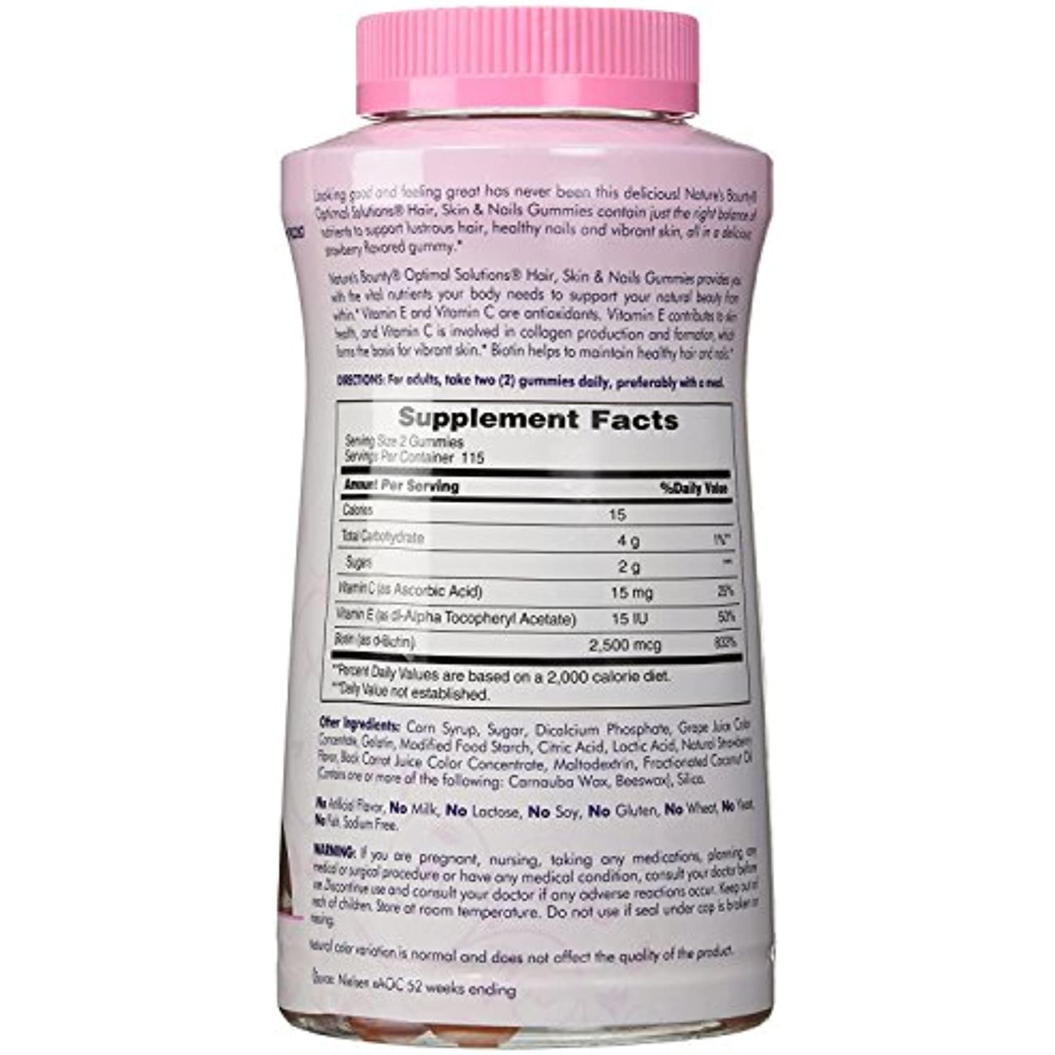 Nature's Bounty, the makers of Hair, Skin and Nail products for 20 years, continues to bring you the latest innovations in beauty care with Nature's Bounty Optimal Solutions Hair, Skin & Nails Gummies formula combining just the right balance of nutrients to support lustrous healthy hair, healthy nails and vibrant skin. These delicious strawberry flavored gummies include Vitamin E, Vitamin C and Biotin.