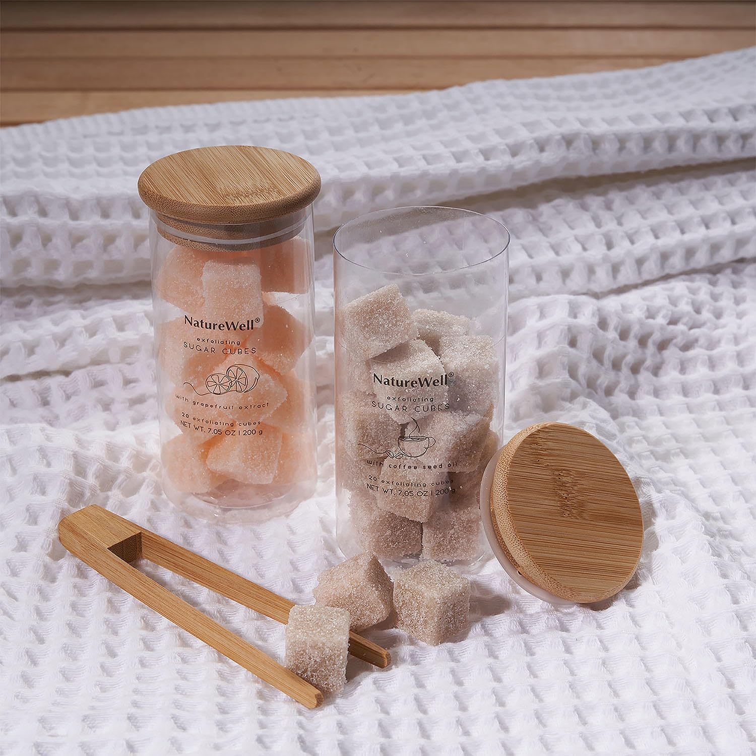 - 20 - NatureWell Exfoliating Sugar Cubes with Coffee seed oil, 20 - NatureWell Exfoliating Sugar Cubes with Grapefruit extract, 1 - Bamboo Tongs