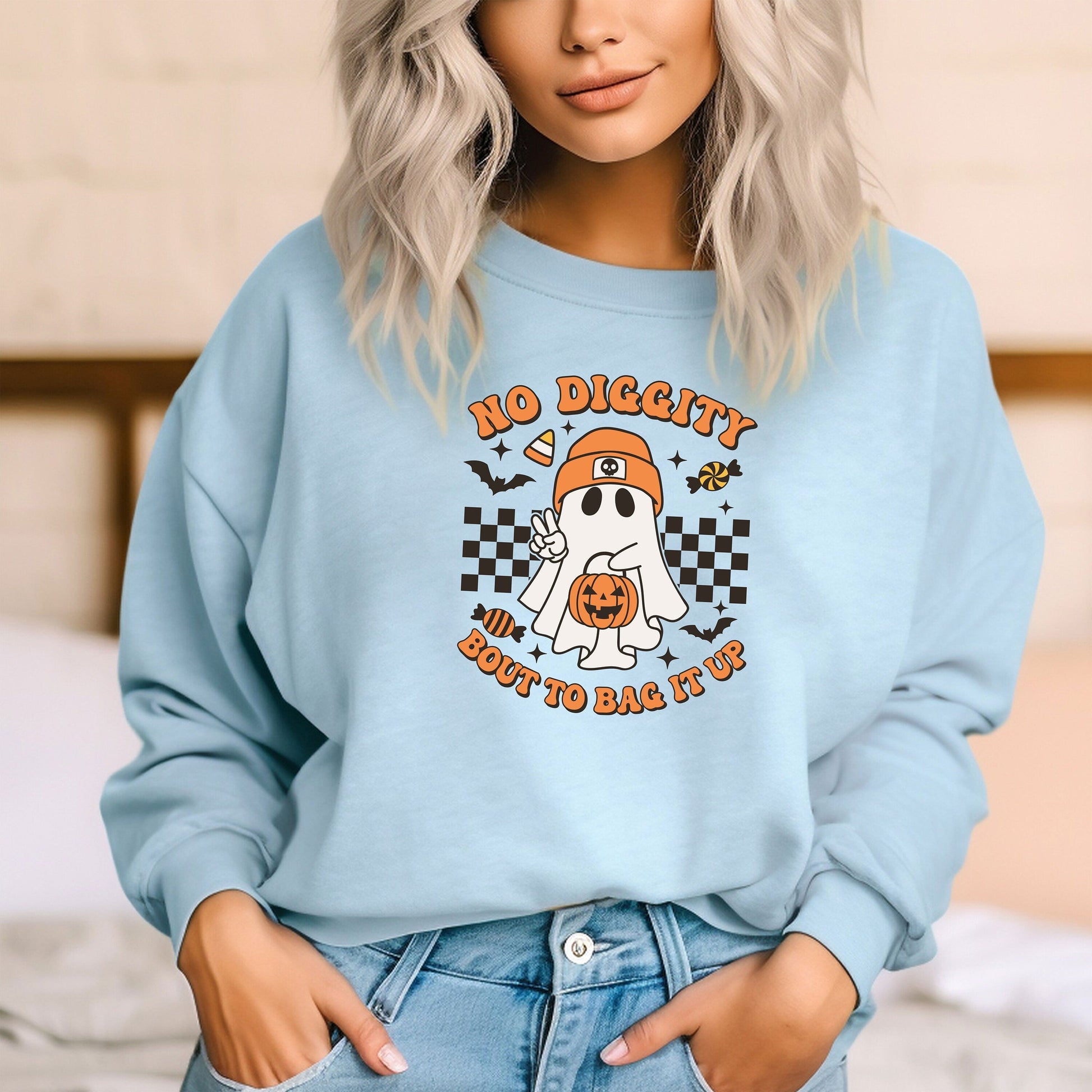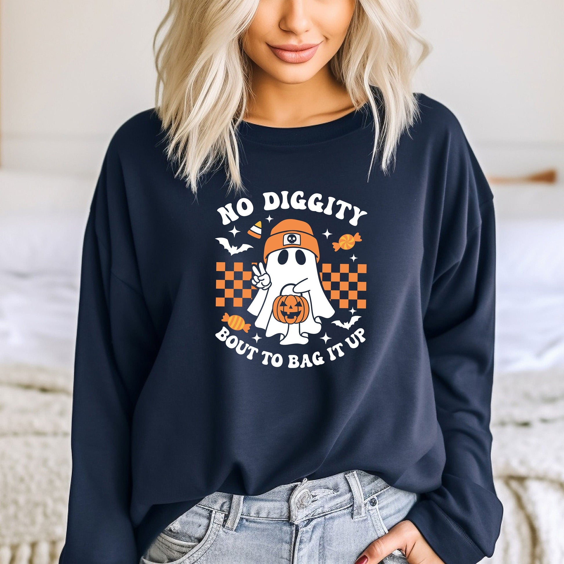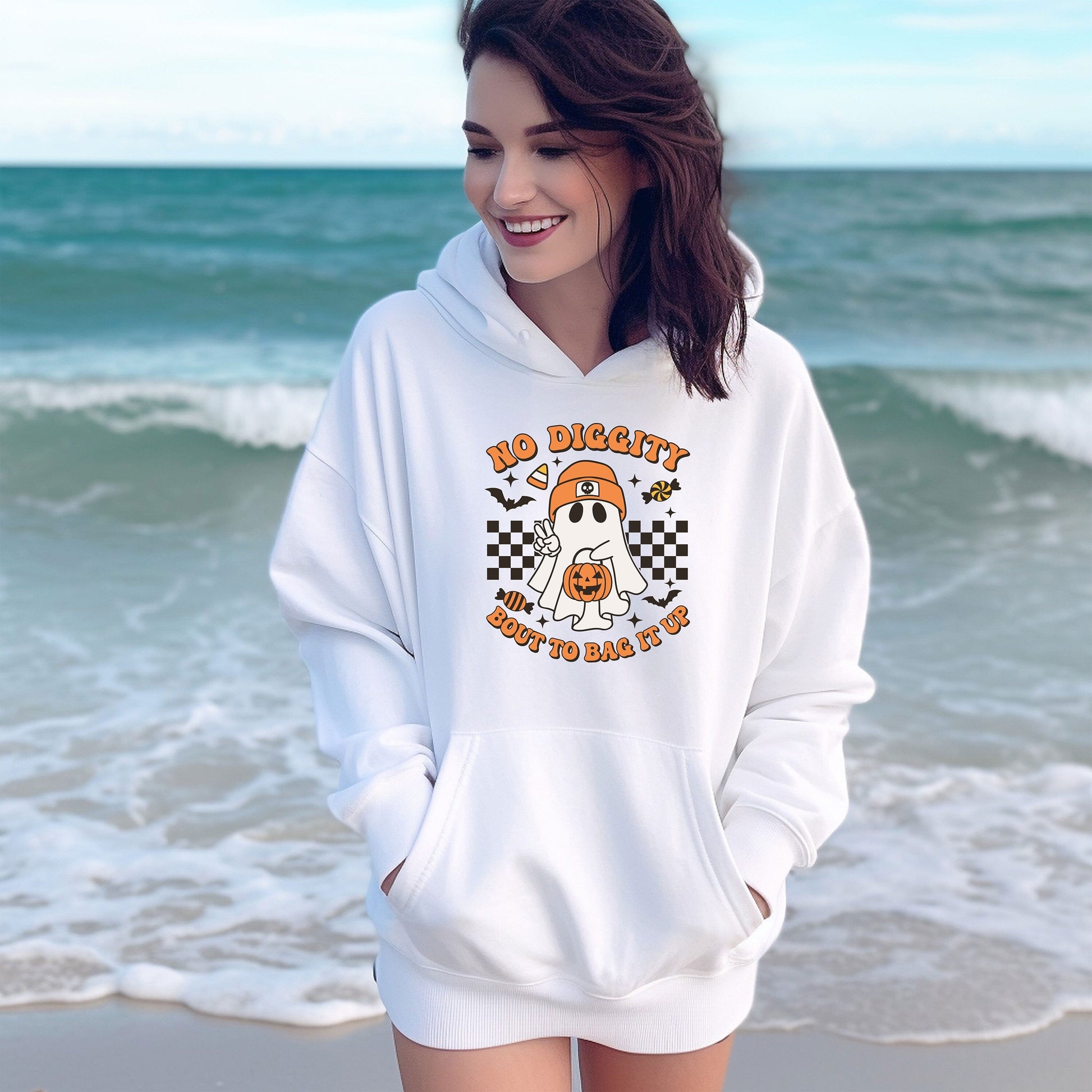 No Diggity Bout To Bag It Up Sweatshirt, Cute pumpkin Ghost Halloween Hoodie, Spooky Sweat, Retro Hoodie, Halloween Gift Tee, Spooky Season,