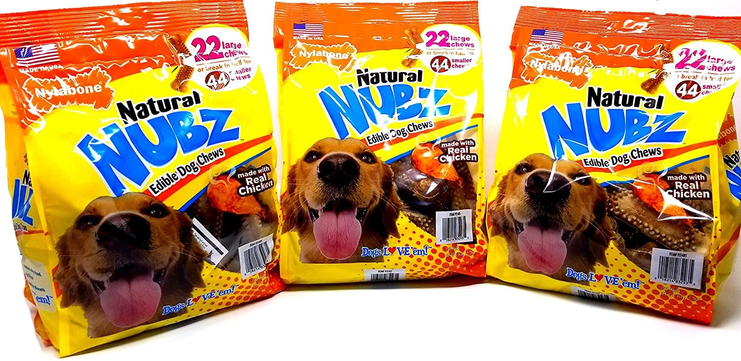Nylabone Natural Nubz Edible Dog Chews Value Pack of 66ct. / 7.8 lbs. Total (3 x 2.6 lb / 22 ct Bags)