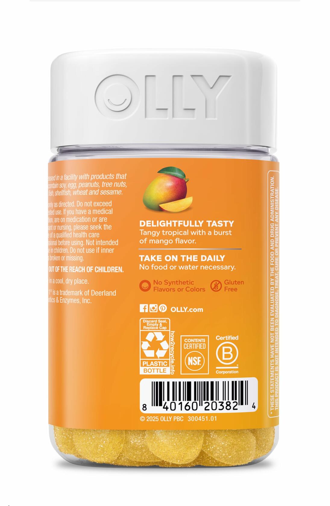 - OLLY PROBIOTIC TROPICAL MANGO: Probiotics encourage your flora to thrive which helps keep your tummy and tract feeling good. 70% of your body’s immune system lives in your digestive tract, so gut health is super important for overall health*