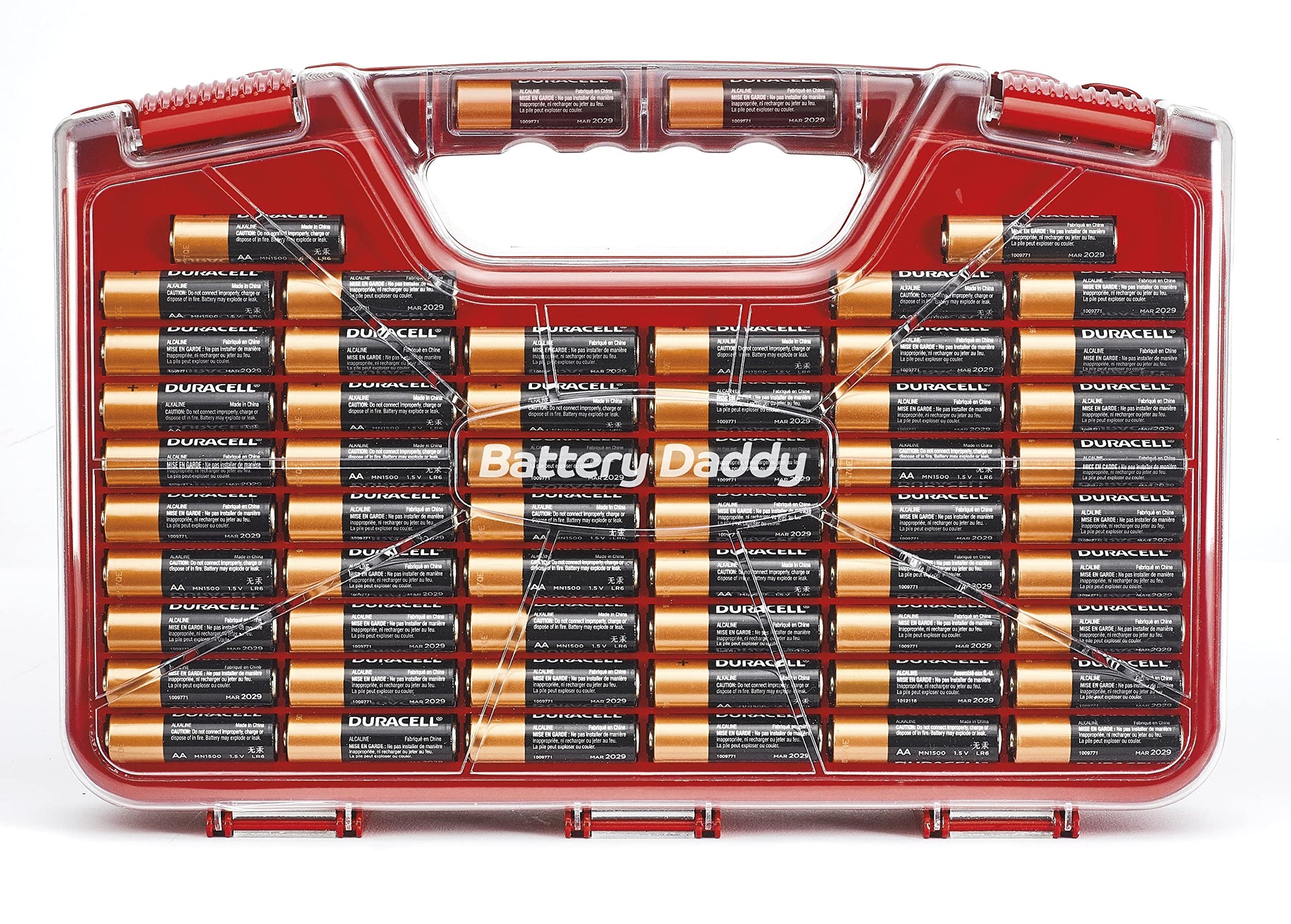 - Double-Sided Battery Organizer: The Ontel Battery Daddy is a compact & portable way to organize, store and protect a boatload of batteries! Clear 'Easy View' cover lets you see everything at a glance and prevent any unwanted contact.