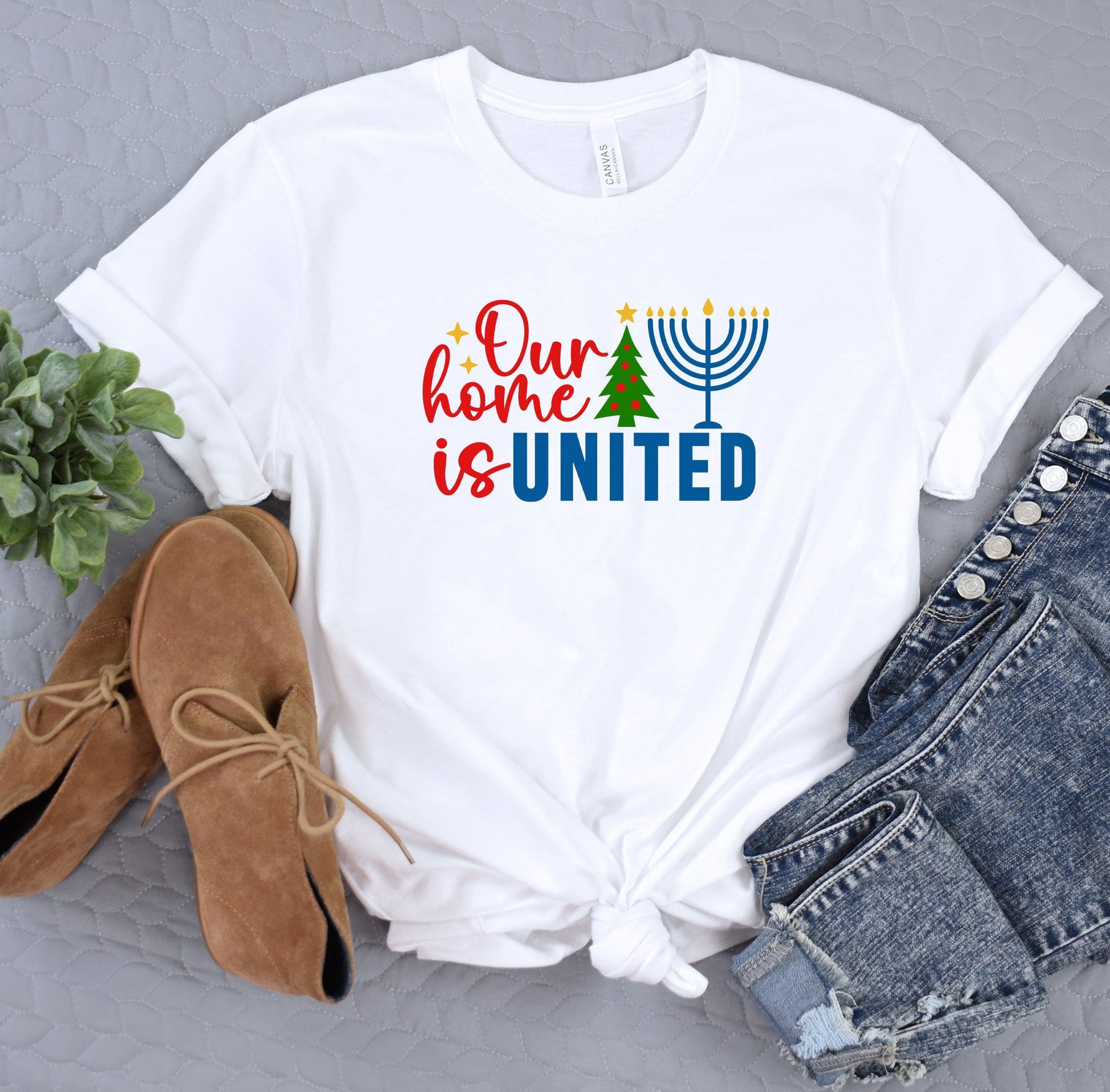 Our Home Is United Shirt, Happy Hanukkah Shirt, Jewish Cristian Shirt, Holiday Hanukkah Shirt, Jewish Saying Shirt, Religious Shirt