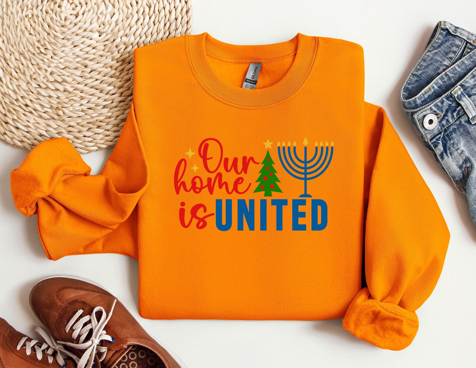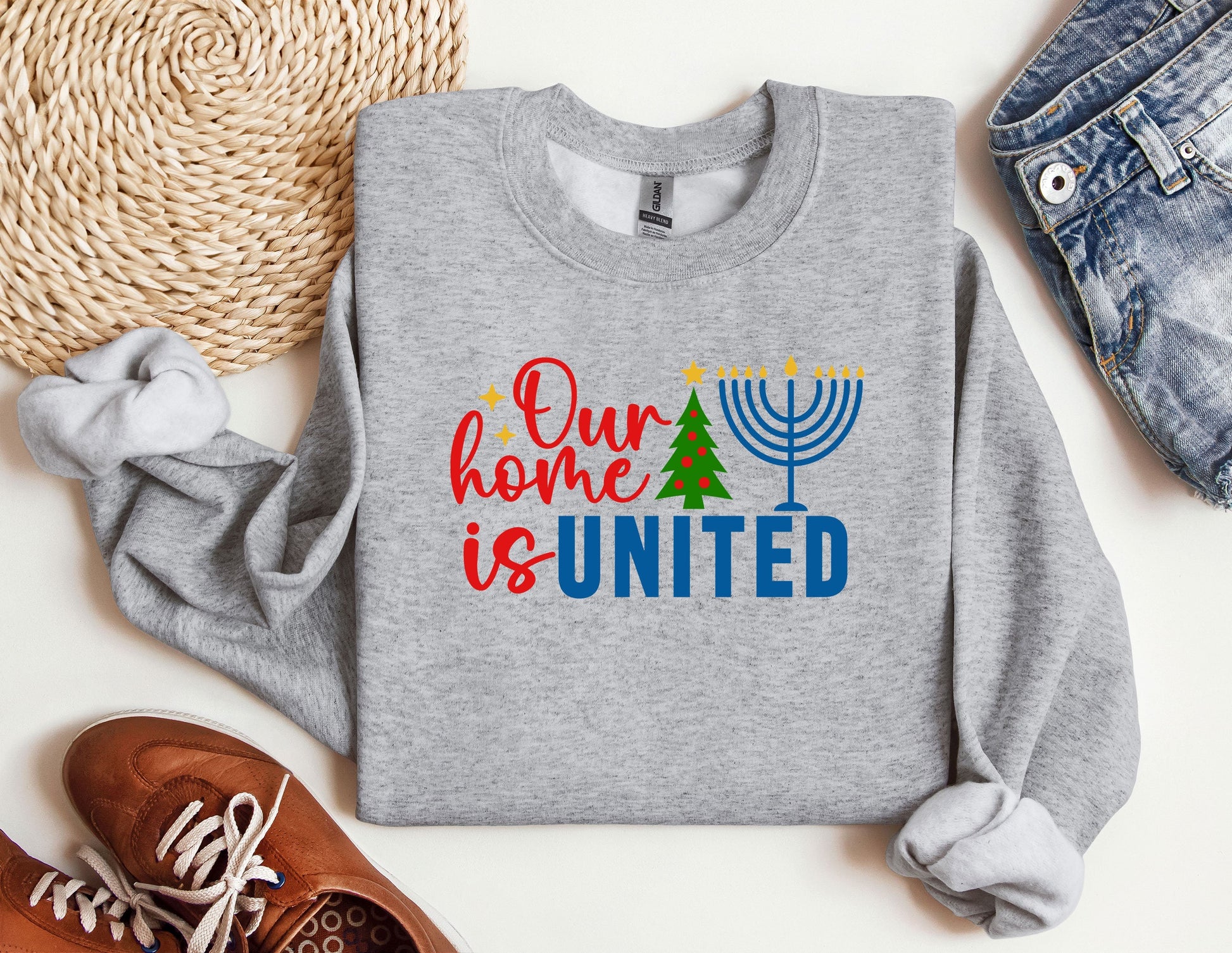 Our Home Is United Sweatshirt, Happy Hanukkah Sweatshirt, Jewish Sweatshirt, Holiday Hanukkah Hoodie, Hanukkah Hoodie, Jewish Saying Hoodies