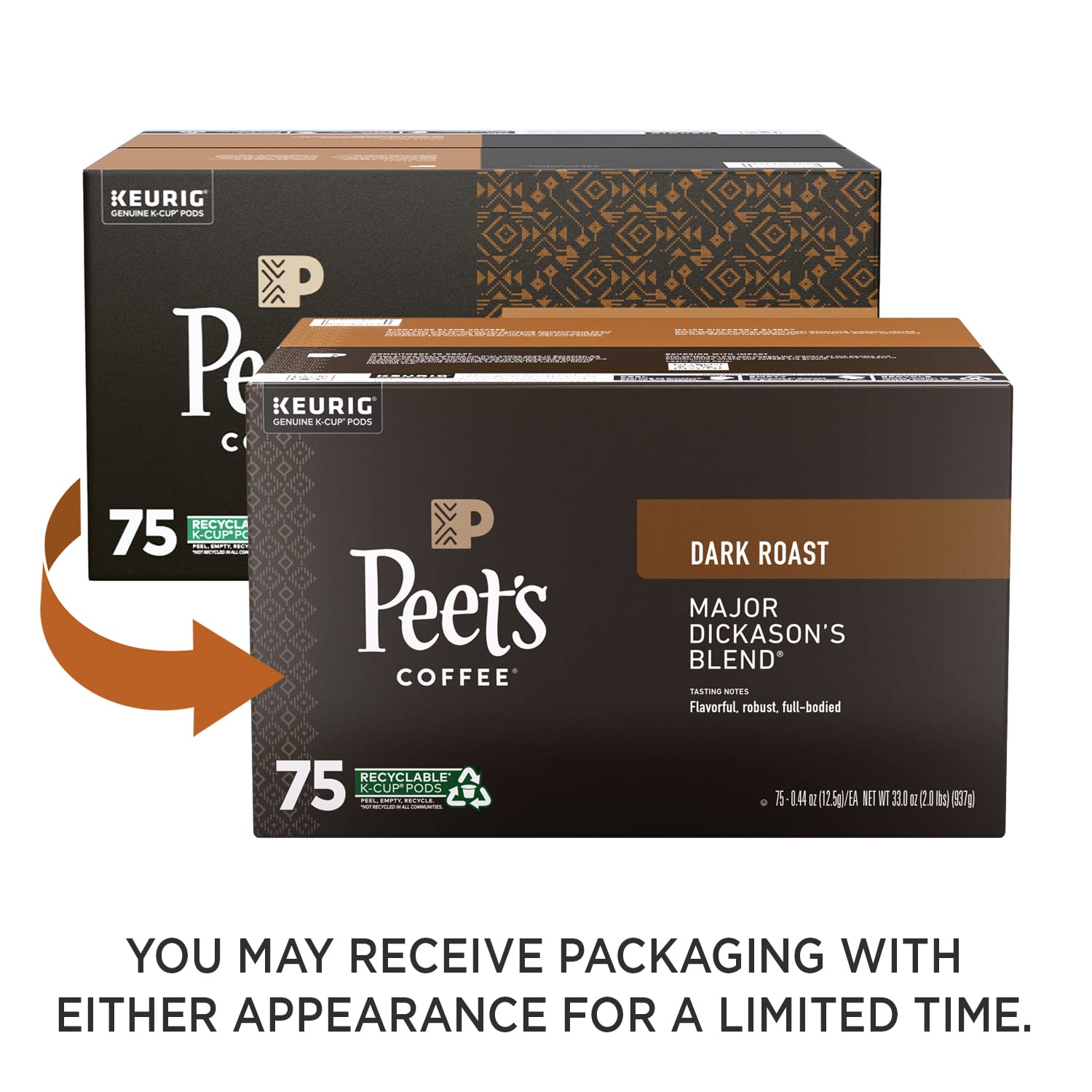 Peet's Coffee, Dark Roast K-Cup Pods for Keurig Brewers - Major Dickason's Blend 75 Count (1 Box of 75 K-Cup Pods) Packaging May Vary