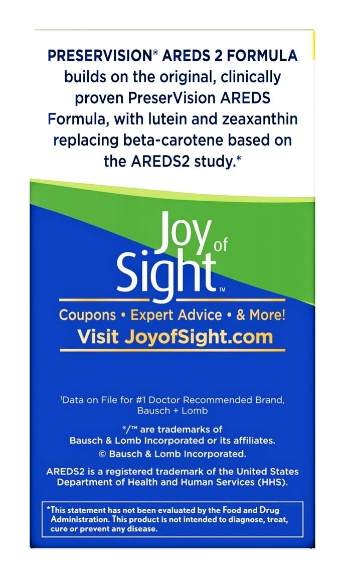 Having a healthy body is important, and you want to be sure that you are doing well from head to toe. To help with that, many people choose to take supplements, and this includes supplements for their eyes and vision. Bausch & Lomb Preser-Vision AREDS 2 Formula Supplement (210ct). To help preserve vision, the AREDS 2 could be an option to consider adding to your list of supplements.