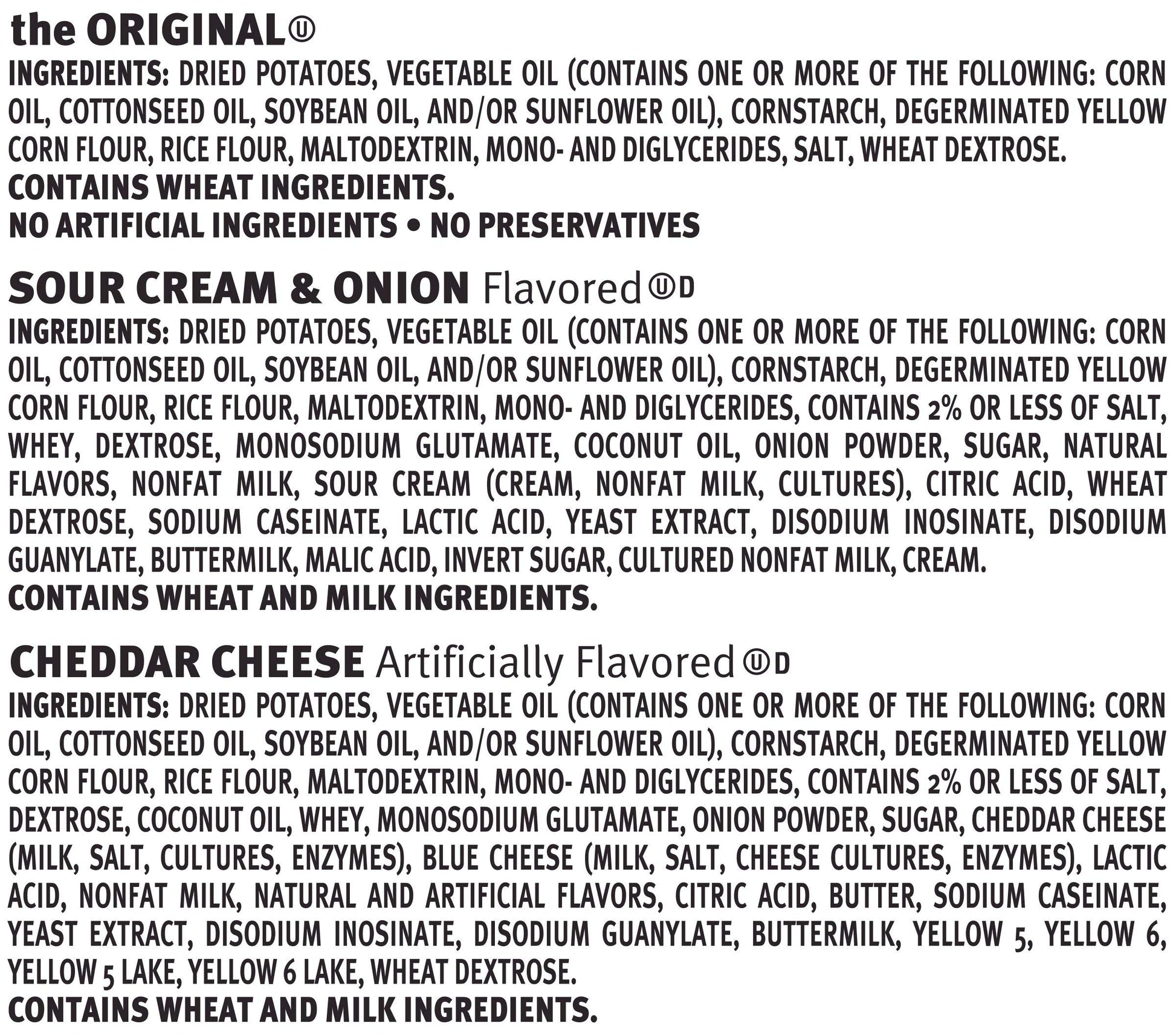 - Flavors include: 24 Original 12 Cheddar Cheese 12 Sour Cream & Onion