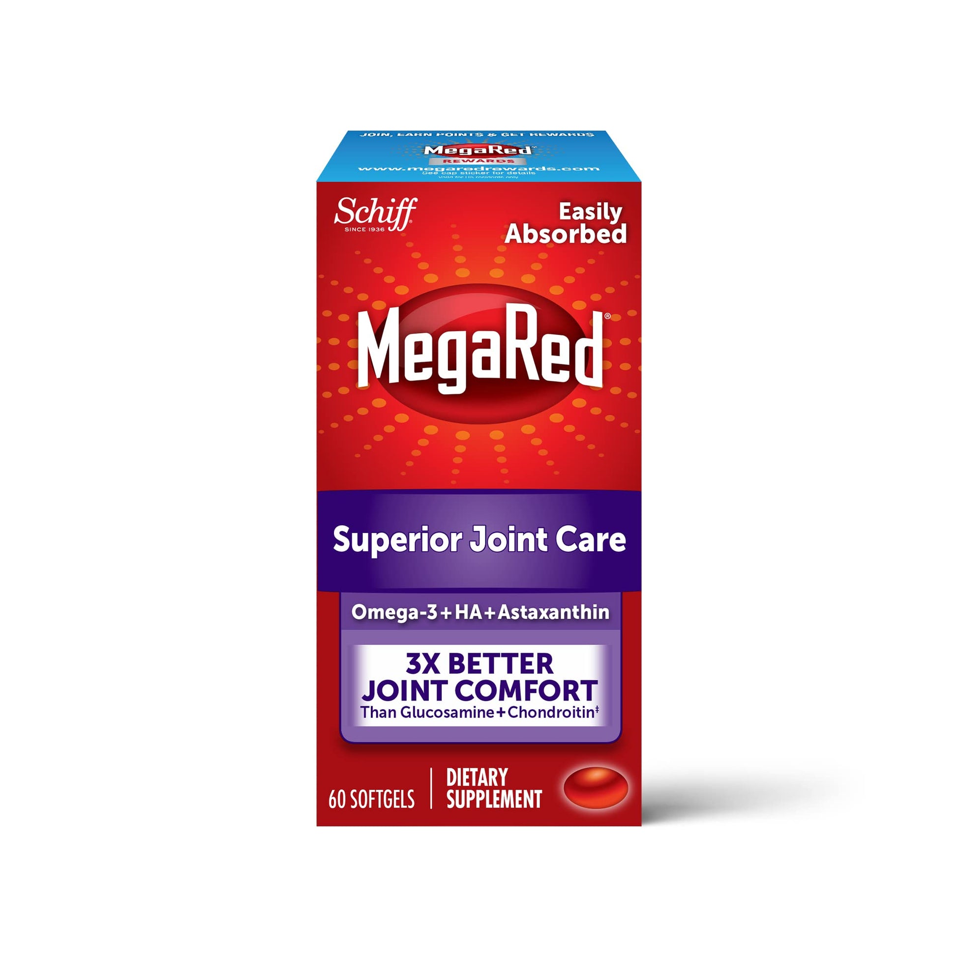 Megared Joint Care has a proprietary formula that combines powerful Omega-3 krill oil with hyaluronic acid, a nutrient that exists naturally in your body, and the antioxidant astaxanthin to support joint comfort Small Softgel, Big Joint Health Benefits 1) MegaRed Joint Care uses 100% pure krill, tiny crustaceans that thrive in the pristine waters of the Antarctic. 2) MegaRed Joint Care quickly comforts your joints, helping you do more of the things you enjoy 3) A recent human clinical study showed that just one small, easy to swallow MegaRed Softgel per day comforts joints better that Glucosamine and Chondroitin. MegaRed Joint Care begins to provide comfort to your Joints in as little as 7 Days. Unlike Glucosamine and Chondroitin tablets which can be hard to swallow, you just need to take one small MegaRed Joint Care softgel per day.