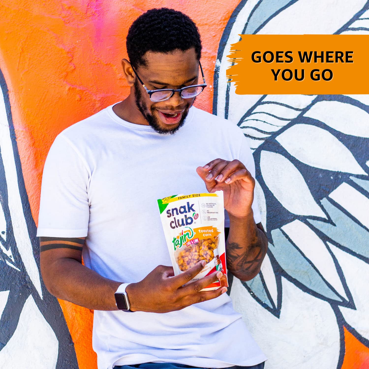 Snak Club Toasted Corn, Tajin Cl�sico Chili & Lime Flavor, Crunchy, Flavorful Low-Cholesterol Individual Snacks, 2.5oz (Pack of 12)