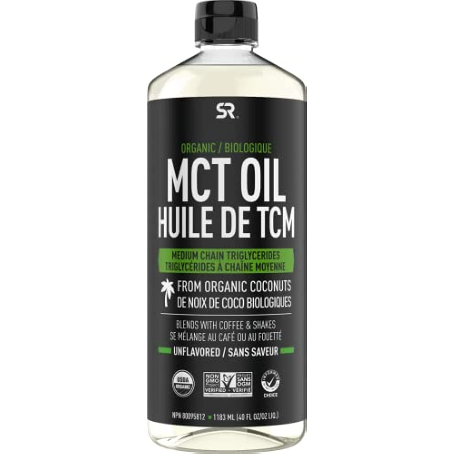 Sports Research Keto MCT Oil from Organic Coconuts - Fatty Acid Fuel for Body + Brain - Dual Ingredient C8 and C10 MCTs - Perfect in Coffee, Tea, & More - Non-GMO & Vegan - Unflavored (40 Oz)