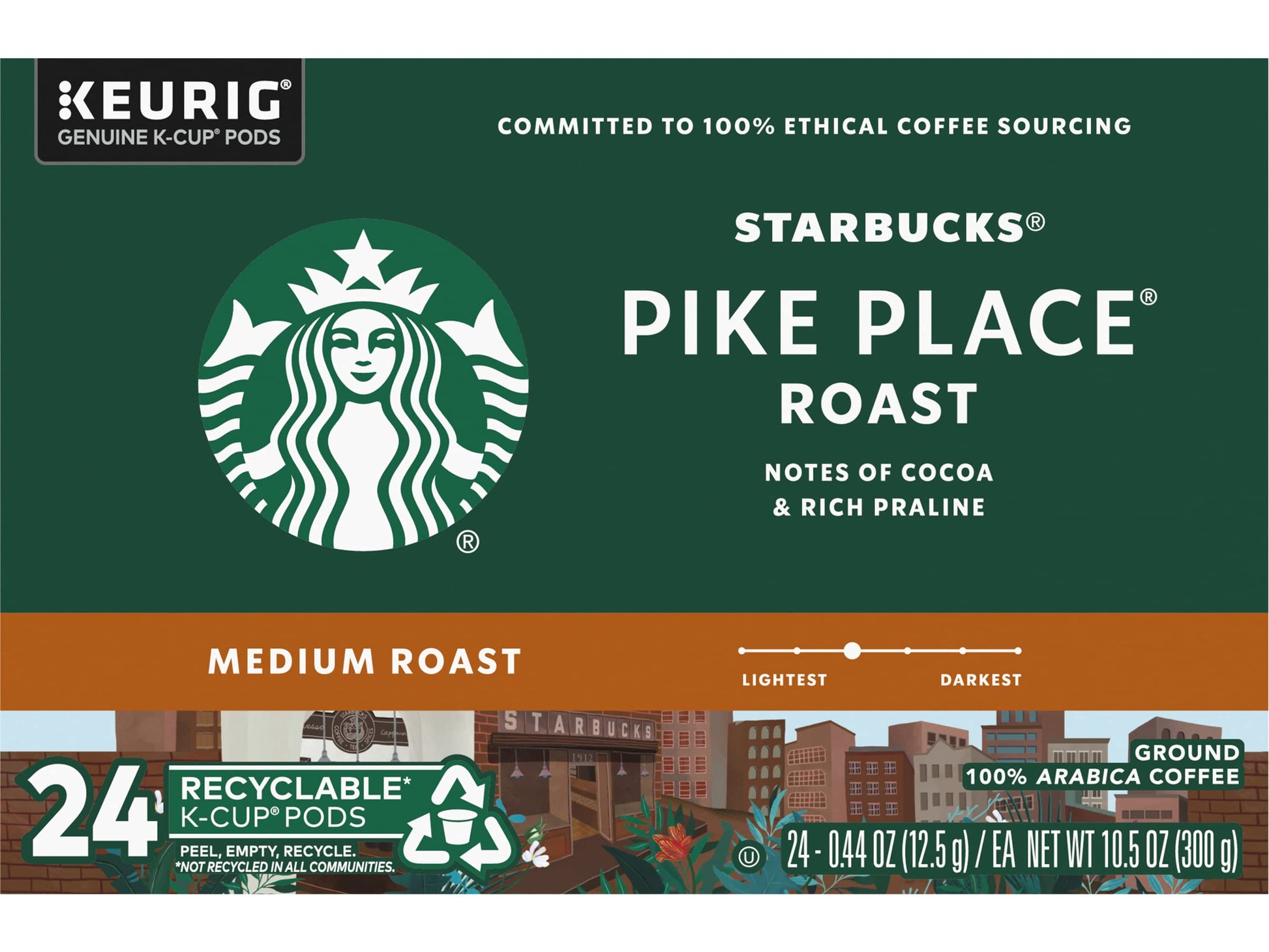 - PREMIUM COFFEE IN A K-CUP: Starbucks delivers exceptional coffee cup after cup with Pike Place Roast medium roast coffee—24 total K-Cup pods for Keurig brewers per box