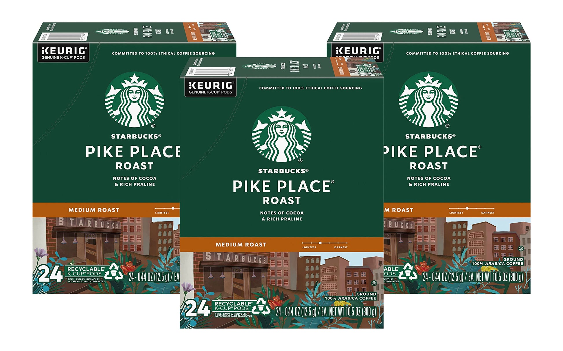 Starbucks Pike Place single serve capsules for Keurig K-Cup pod brewers, 24 Count (Pack of 3)