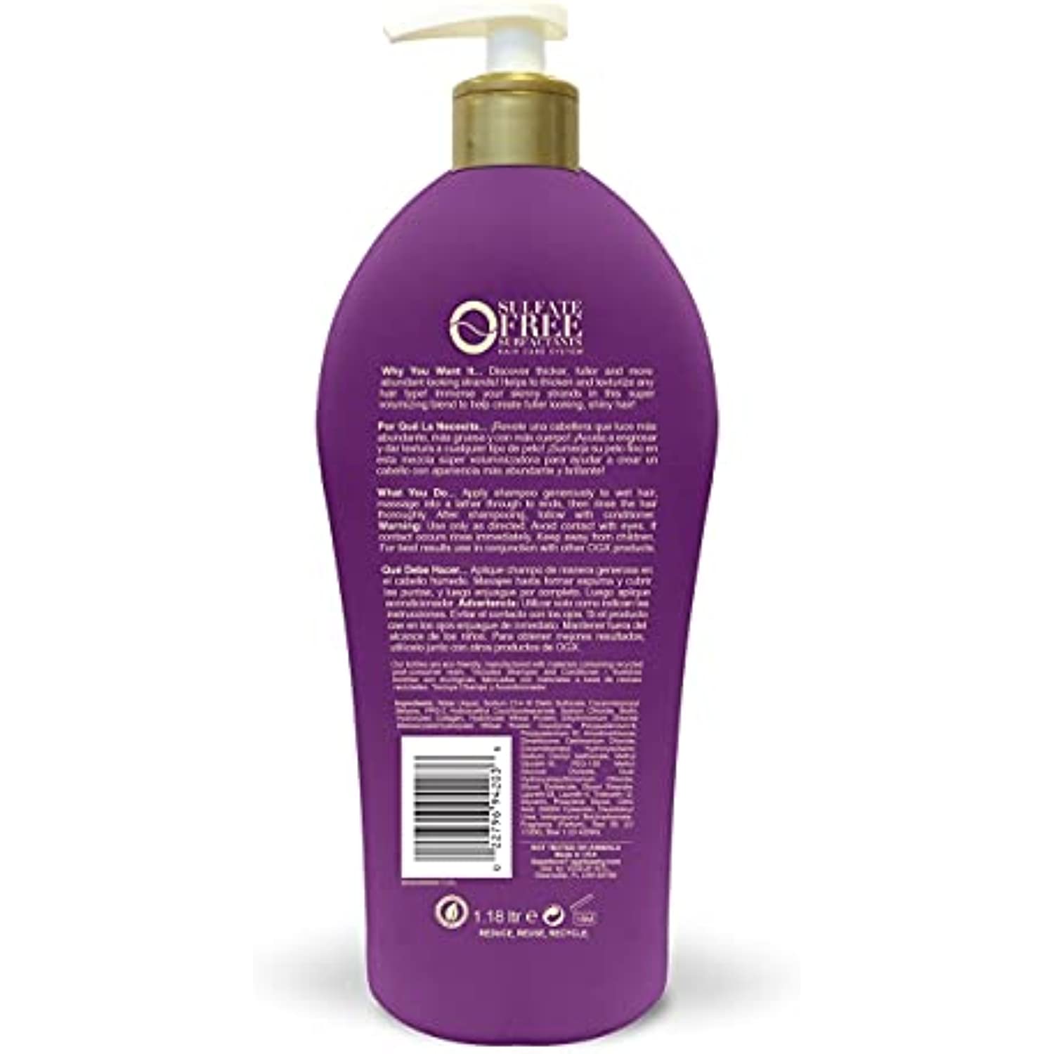 *Vitamin B7 Biotin, Collagen and Hydrolyzed Wheat Protein. *Supports Thicker, Fuller and Healthier Looking Hair. *Not Test on Animals. Sulfate-Free. *Made in USA. *Size: 40 FL OZ (1.18 Liters) Each Bottle.