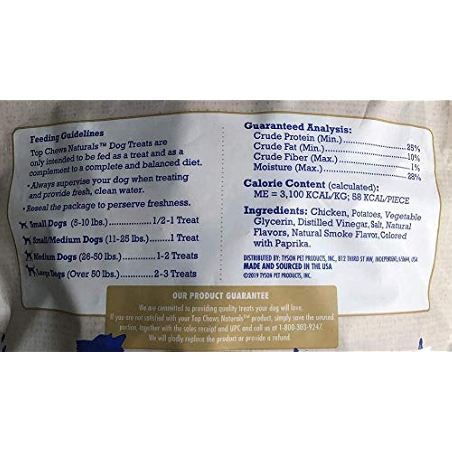 Made with Real Chicken raised with no Antibiotics Made in USA Contain no corn, wheat or soy. A special treat for your dog